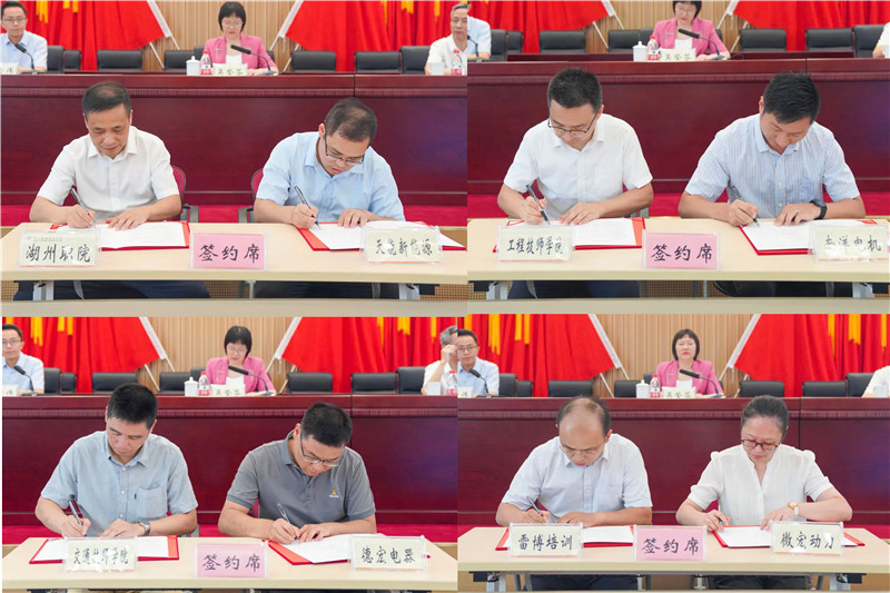 会上,微宏动力系统(湖州)有限公司董事长朱葵代表企业发言,在湖4所职业院校和4家新能源汽车重点企业进行了校企合作签约。