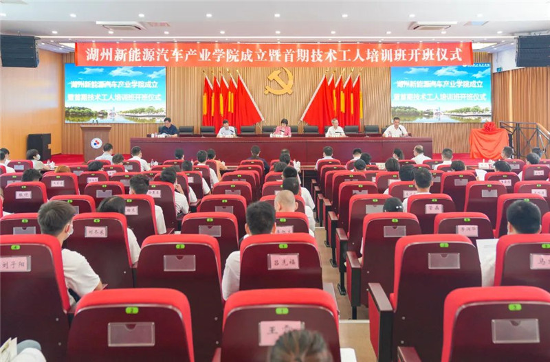 吴登芬代表湖州市人民政府对湖州新能源汽车产业学院的成立表示热烈的祝贺。她指出,湖州新能源汽车产业学院的成立,是我市强化高技能人才培养、缓解技术工人用工短缺的一项务实举措,对加强校企合作、深化产教融合,精准培养高质量专业技能人才,具有重要的示范作用。她强调,职业技能培训要在制造强市建设、共同富裕先行中发挥更大作用;完善职业技能培训制度体系、技能人才培养工作体系、技能人才培养激励机制,持续优化技能人才就业环境;推进校企技能人才培训合作的路越走越宽,加快提高院校培养能力,促进教育链、人才链与产业链、就业链深度融合,充分发挥企业主体作用,推动人才集聚与产业发展同频共振,强化各位学员的主角意识,争做技能人才的示范标杆。