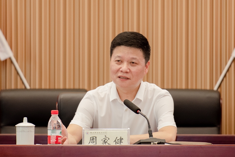 周家健作了实干争先,奋斗有我,共创未来为主题的讲话,他充分肯定了本届中层干部在任期内为推动学校事业改革发展所作出的努力和取得的成绩,并代表学校党委向全体干部致以崇高敬意和衷心感谢。他指出,近年来,在省市委和省教育厅党委的坚强领导下,学校高质量赶超发展势头强劲、行稳致远。博士硕士研究生学历专技人才总量增至2.3倍,毕业生“留湖率”增至2.5倍、财务收入增至2.8倍。省政府教育督导评估中,学校在全省47所高职院校中排名第4位,走在前列。占地1200亩、总建筑42万平方米的湖职新校园,计划年底开工建设。今年是党的二十大召开之年,是落实学校“十四五”规划关键的一年,也是二次党代会“一三六六五”决策部署“三步走”战略第二步的开局之年,全体中层干部要做到信念坚定、为民服务、勤政务实、敢于担当、清正廉洁,高质量完成时代赋予的历史使命。