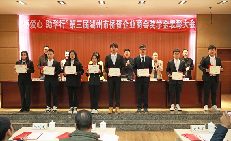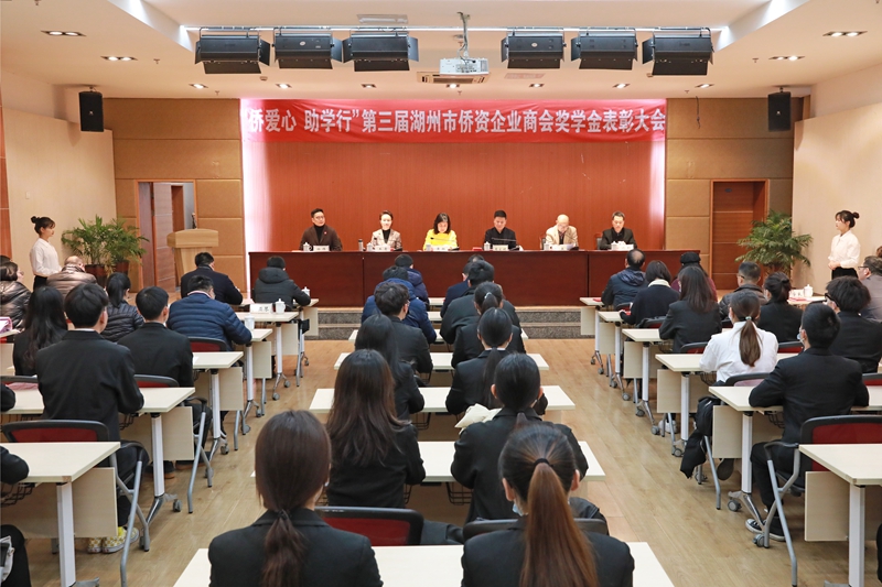为支持湖州经济社会发展和职业教育事业发展,激励学生努力学习、积极进取,加强大学生感恩教育,培养大学生仁爱精神和奉献情怀,湖州市侨资企业商会在我校设立奖学金。12月29日下午,“侨爱心 助学行”第三届湖州市侨资企业商会奖学金表彰大会在学校教师发展中心一楼报告厅隆重举行。校党委书记周家健,湖州市政协常委、市侨资企业商会会长黄红,湖州市侨联主席、市侨办主任王青,市侨资企业商会常务副会长兼秘书长徐伟,市侨联副主席沈列出席本次大会。会议由学校党委副书记叶主主持。