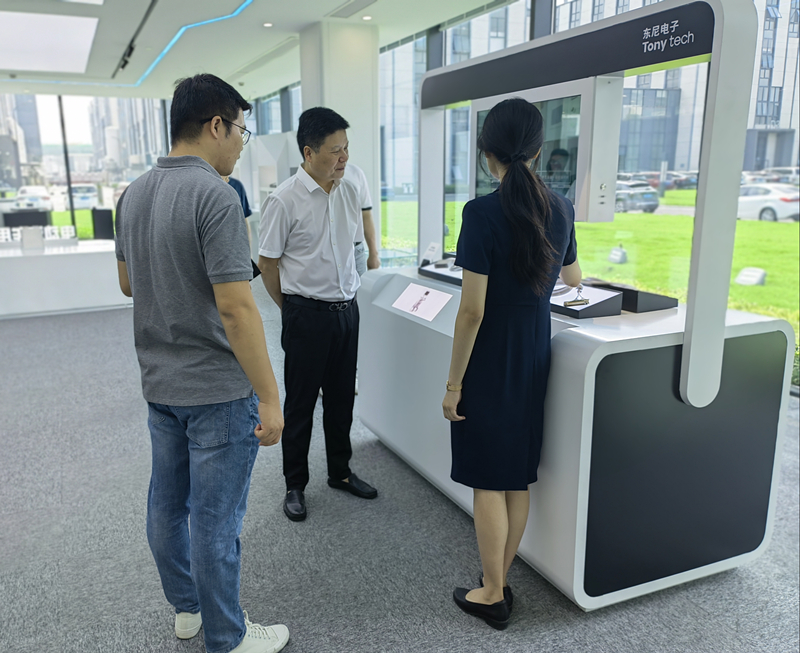 周家健一行参观了东尼电子展厅和磁材车间生产线,全面了解了东尼电子的企业发展历程、“十四五”期间企业发展规划、主要业务发展领域和取得的尖端技术研发及产品成果。东尼电子2017年在上海证券交易所成功挂牌,是一家专业从事超微细电子绝缘复膜线材、电磁线、信息化产业通用性铜银合金超微细线材、超细金刚石切割线和无线充电线圈等产品开发、生产和经营的高新技术企业。