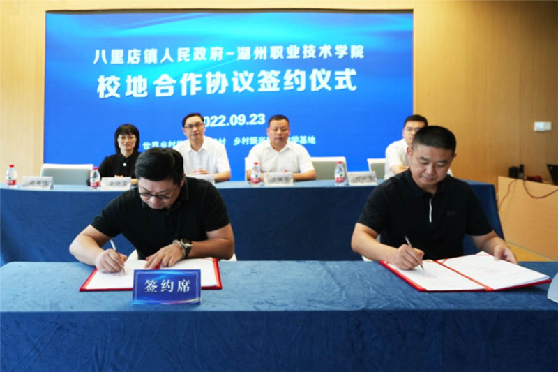 为了进一步激活乡村动能,助力乡村振兴实现共同富裕,谱写美好吴兴篇章,9月23日,我校与八里店镇人民政府在千年古村潞村举行校地合作签约仪式。校党委委员、副校长肖先波,校党委委员、艺术设计学院党总支书记李晓英,八里店镇党委副书记、潞村专班指挥长沈镇华,艺术设计学院、八里店镇人民政府主要负责人,以及艺术设计学院师生代表、潞村景区运营方代表等参加活动。