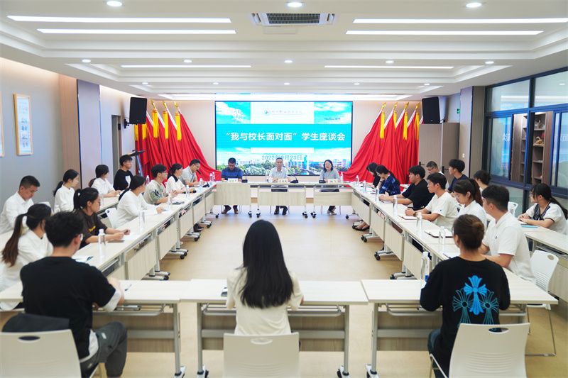 金风送爽,丹桂飘香。在9月23日新学期第一个爱生日,学校召开“我与校长面对面”学生座谈会。校长沈建民,学生处、资产经营公司、教务处、实训管理处、团委等部门有关负责人,学生代表参加座谈。