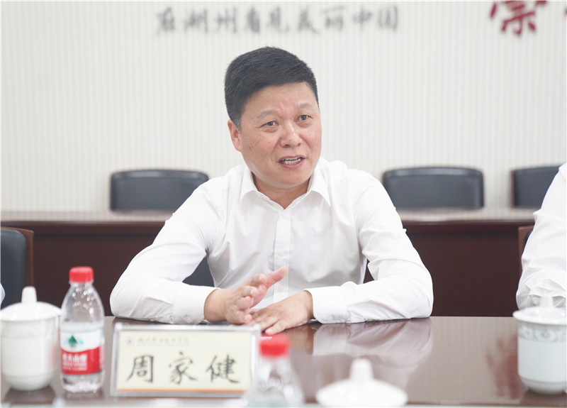 周家健向丁松泉一行表示热烈欢迎。他简要介绍了学校“十三五”以来的发展及主要成果。多年来,学校党委行政始终坚持“全面深化改革、加快转型发展、更好服务湖州”这一主线,在全校师生的共同努力下,在政治上和业务上交出了两张满意答卷。学校作为全省首批党建工作示范高校,持续推进党建工作“五个起来”,实现省内做示范国内有影响,得到了省委巡视组的充分肯定。党建工作“五个起来”引领学校事业高质量发展,硕博士研究生人才增至2.6倍,毕业生“留湖率”增至2.5倍,财务总收入增至3.1倍。在浙江省人民政府2021年高职院校教育督导评估中,学校在全省47所参评高职院校中排名第4位,走在前列。