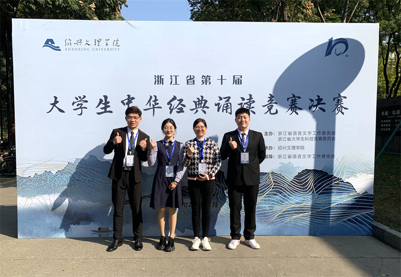 11月6日,浙江省第十届大学生中华经典诵读竞赛决赛在绍兴文理学院圆满落幕。我校学生共获个人组一等奖1项、二等奖2项、三等奖3项,创我校该赛事近8年来最好成绩。