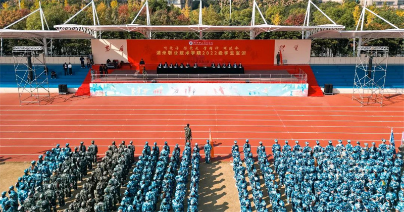 11月7日上午,金风送爽,丹桂飘香。在庄严的国歌声和戎耀卫队嘹亮的口号声中,我校2022级新生军训拉开了帷幕。校党委书记周家健、武警湖州支队上校支队长丁华军、校党委副书记叶主、党委委员副校长肖先波、党委委员宣传部长李晓英、学工部、教务处和团委的负责人、各学院党总支副书记出席了开训动员大会。2022级3900余名学生精神抖擞、激情满怀地参加了动员大会。