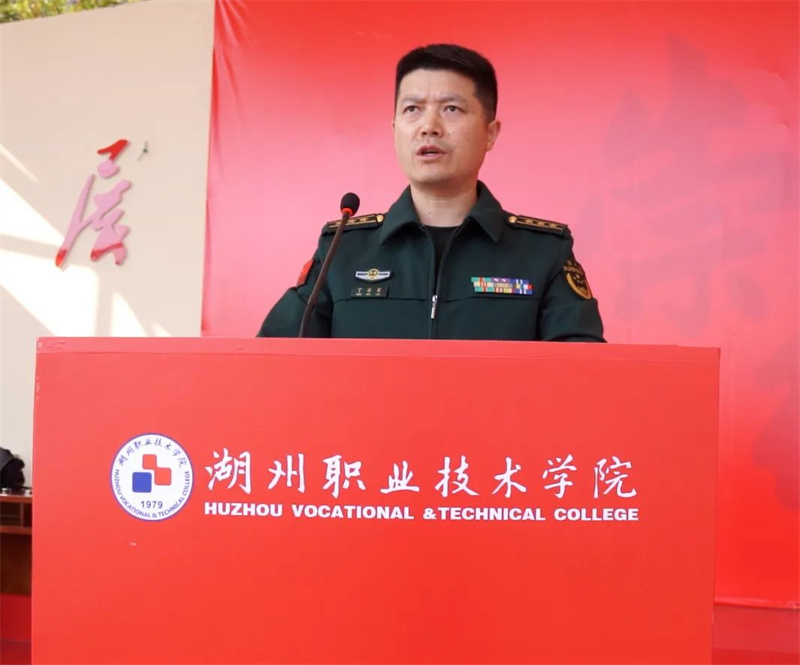 在开训动员大会上,湖州武警支队队长丁华军在动员会上指出,军训是大学生接受国家安全教育和国防教育的基本形式,也是大学生铸魂健魄、成长成才的难得经历。全体参训学生要以饱满昂扬的斗志、以勇于磨炼的信心、以敢于摔打的勇气上好军训这堂课。同时,他也对承训教官提出了三点要求:一是思想上要高度重视,以饱满的精神状态和良好的军人形象做好表率;二是要科学组训,精心施教,尽职尽责。三是要在训练中以生为本,耐心指导,把我党我军光荣传统、优良作风带入校园。