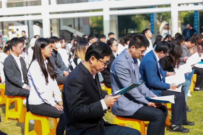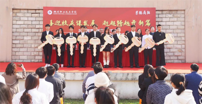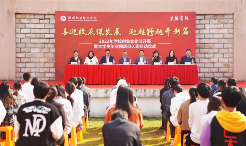 为迎接学校高等职业教育23周年暨办学43周年庆,持续推进创新创业教育改革,展现大学生创业园提质培优转型成果,11月8日上午,学校隆重举行“喜迎校庆谋发展,赶超跨越开新篇”2022年大学生创业文化节暨大学生创业园项目入园仪式。校党委副书记、校长沈建民,校党委委员、副校长肖先波莅临仪式。湖州市人力资源和社会保障局副局长史淦宝应邀出席。教务处、创业学院、招生就业处、学生处、团委、科技处、二级教学单位负责人,以及创业导师和创业园入驻项目团队近百名学生代表到场参加。