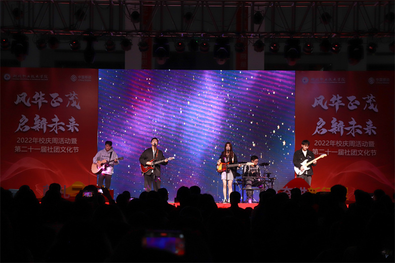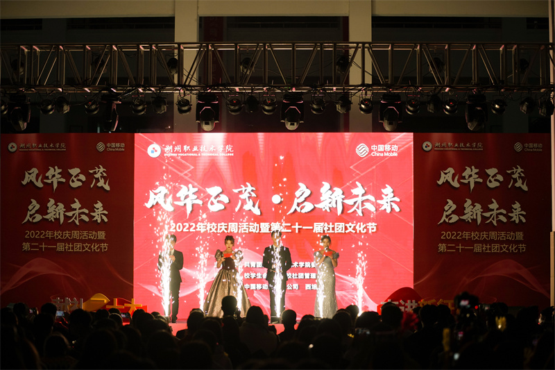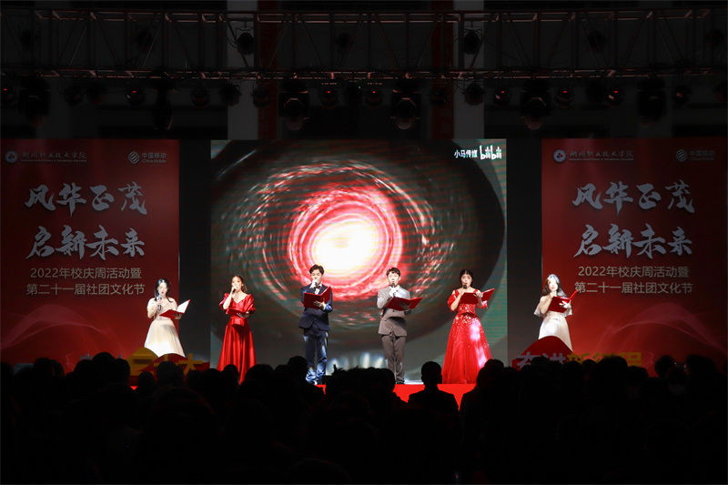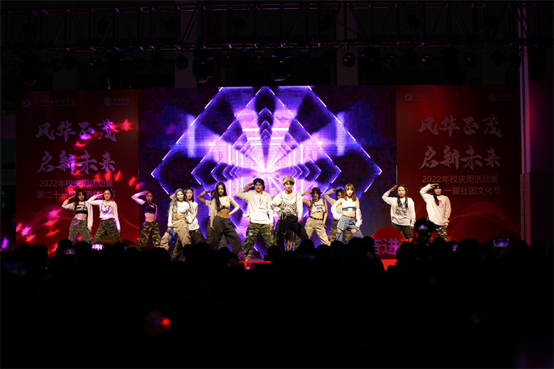 风华正茂·启新未来!11月7日晚,学校2022年校庆周活动暨第二十一届社团文化节在创业广场成功举办。校党委副书记叶主,校党委委员、副校长肖先波,校党委委员、宣传部长李晓英,学工部、团委负责人、各二级学院党总支副书记、辅导员、社团指导老师代表以及800余名新生代表在现场欣赏了一场视觉“盛宴”。本次晚会还通过线上平台向关心关注学校发展的领导、嘉宾和广大校友进行了现场直播,开幕式受到4.5万余次点赞。