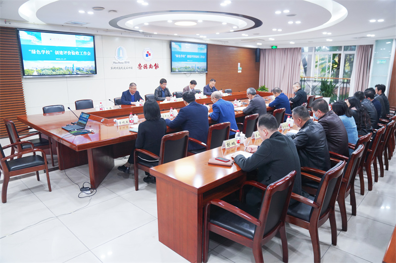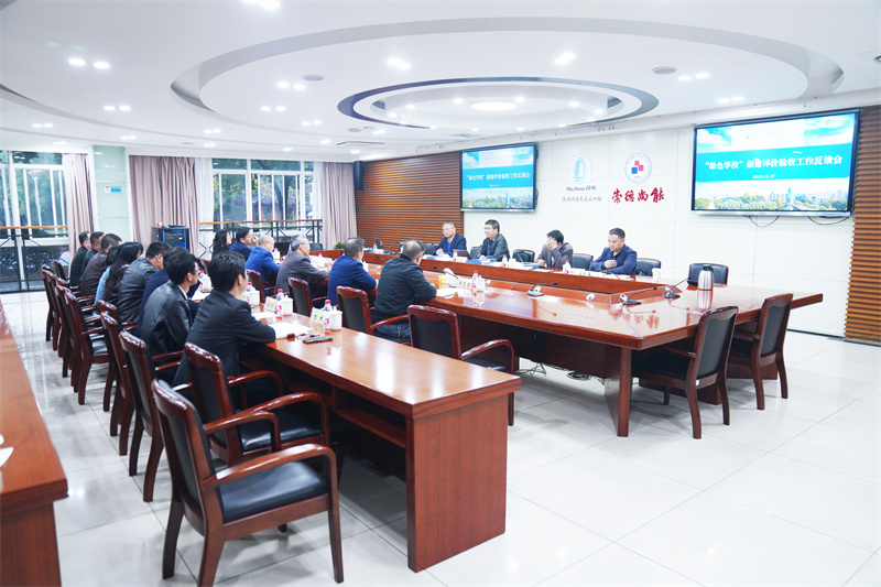 专家组听取了我校绿色学校建设的自评情况汇报,并从精神文化、物质条件、行为管理、管理绩效等四个方面,通过查阅台账资料、核实相关数据、开展实地核查、发放调查问卷等方式进行了评价验收。