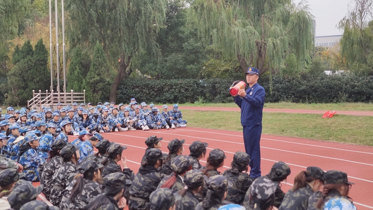 为进一步增强我校师生消防安全意识,提高2022级新生的消防安全素质和消防安全技能。11月14日-16日,保卫处邀请了湖州市消防支队消防员在学校操场、桃李餐厅东侧广场对全体2022级新生进行了灭火器使用演练和火场逃生知识的轮训。