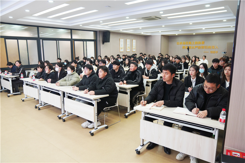 2月16日下午,为深入学习贯彻党的二十大精神,进一步深化“三全育人”综合改革,切实把全校广大党员师生的力量凝聚到学校新一年实干奋进的事业发展上来,充分凝聚学生深度共识,激发学生信仰力量,学校“开学第一课”暨首期信仰课堂在党群服务中心精彩开讲。首次信仰课堂由校党委副书记叶主以《实干奋进,立志做有理想、敢担当、能吃苦、肯奋斗的新时代好青年,在青春的赛道上跑出“加速度”》为题进行领衔宣讲。各全日制二级学院党总支副书记、辅导员代表、学生代表近100人聆听宣讲。校党委委员,宣传部长李晓英主持。