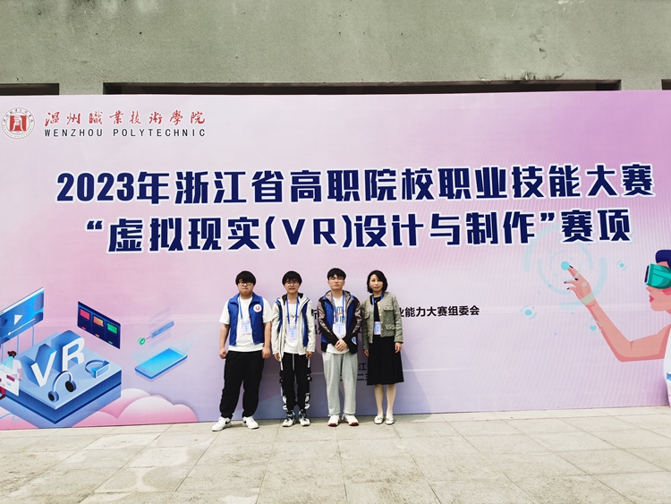 4月13日—14日,第六届浙江省高职院校虚拟现实(VR)设计与制作大赛在温州职业技术学院举办。此次大赛由浙江省教育厅主办,温州职业技术学院承办,全省23所高职院校的46支参赛队伍参加比赛,在赛场上展开了激烈角逐。经过一天的激烈竞争,我校信息工程与物联网学院卢��、程丽丽老师所指导的雷新钰、林祥苗、赖立都三位同学组成的团队荣获第六届浙江省高职院校虚拟现实(VR)设计与制作大赛二等奖。