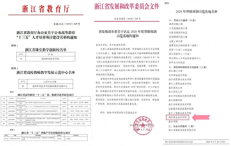 视点:省教育厅下发《关于公布高等教育“十三五”人才培养项目建设名单的通知》,我校被认定为浙江省课堂教学创新校,学校教师教学发展中心入选浙江省高校教师教学发展示范中心。学校领衔制定全国首个民宿服务质量地市级标准,制定的《示范民宿服务质量指南》《示范景区村庄服务质量指南》两个地方标准发布实施,展示了湖州乡村旅游发展的制度建设成果。省发改委下发《关于认定2020年度省级双创示范基地的通知》,我校成功入选高校和科研院所示范基地。学校坚持“做实基础、狠抓常规、补齐短板、强化特色”的教学观,扎实推进教学改革,建立健全专创融合、课程改革、实战训练、指导帮扶、文化引领融为一体的创新创业教育体系,建设以创新型人才培养、科技成果转移转化、双创服务支撑平台为定位的示范基地。