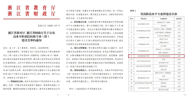 新闻(七) 我校工业过程自动化技术专业入选浙江省高职高水平专业群建设名单