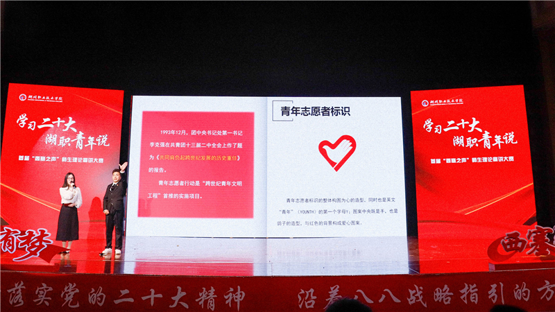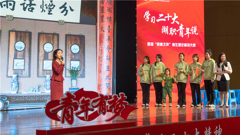青春有梦,西塞之声。来自11个党总支、直支的11支青年师生队伍,围绕着党的二十大的主题以及学校实干奋进的年度工作主题,进行了一场场深刻透彻、极富有感染力的宣讲。《弘扬伟大建党精神 凝聚民族复兴力量》《中国共产党时空之旅》《从数字蝶变,看二十大强国之策》《育乡村振兴“新农人” 谱共同富裕新篇章》……青年师生们用青年人独有的话语体系和视角宣讲党的二十大精神以及“八八战略”。