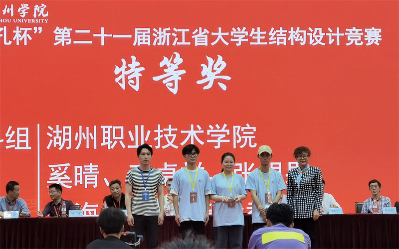 5月12日至14日,第二十一届浙江省大学生结构设计竞赛在衢州学院举行。经过激烈角逐,由我校建筑工程学院两支参赛队伍以总分第一名、第二名的成绩,包揽该竞赛前两名!奚晴、王卓祥、张银果三位同学组成的“小塔吊”参赛队荣获第二十一届浙江大学生结构设计竞赛特等奖;蒋梦瑶、邵博源、董皓天三位同学组成的“云峰”参赛队荣获一等奖。这是我校代表队连续十届登上该项赛事一等奖的领奖台,并拿下本届大赛本专科全场唯一一个特等奖。
