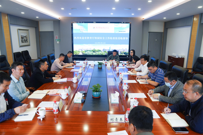 为深入贯彻落实党的二十大精神和习近平总书记关于安全生产重要论述,根据浙江省教育系统安全生产大检查、大排查工作要求,5月24日,杭州市教育局校安处副处长黄健一行4人莅临我校进行安全生产工作检查。学校副校长左希庆、湖州市委教育工委专职副书记胡卫东、市教育局校安处处长陈金星陪同,保卫处、学生处、校园建设处、资产管理处、实训管理处和资产经营公司等职能部门相关负责人参加检查工作。