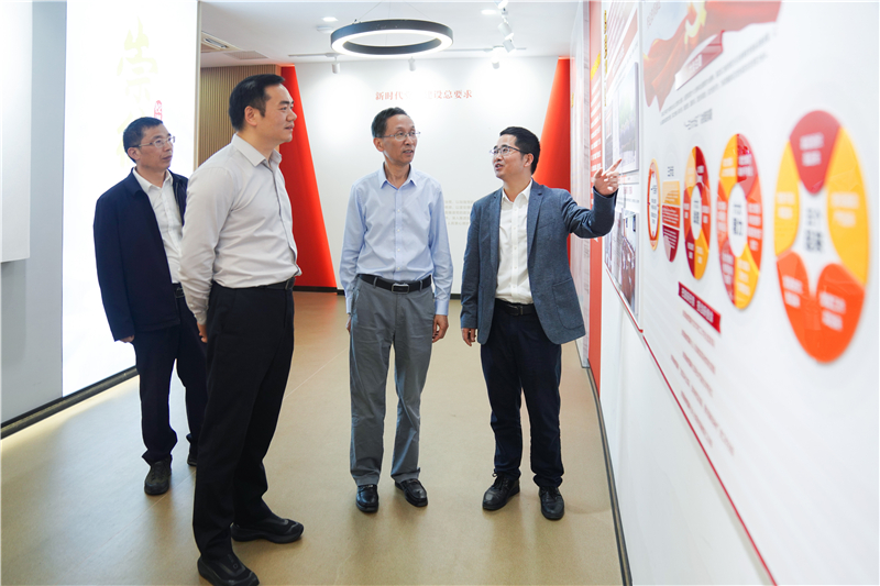 会前,校长沈建民会见了黄亮一行,对他来校调研表示欢迎。沈建民介绍了学校近年来党建工作和改革发展取得的成效,并陪同参观了党群服务中心和包畹蓉京剧服饰馆。