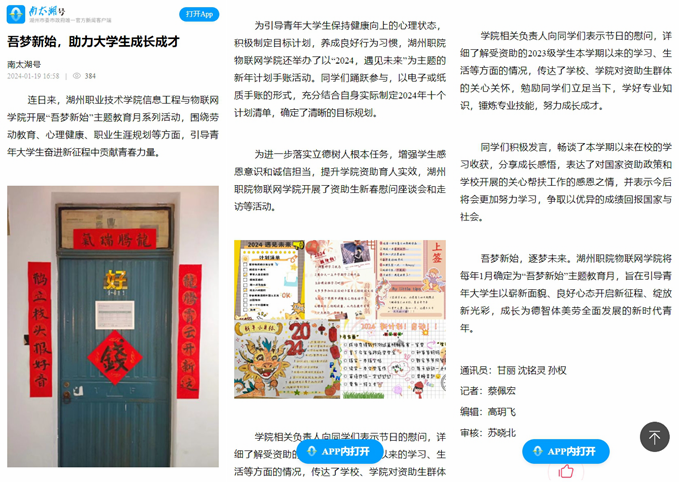 》报道了我校信息工程与物联网学院开展“吾梦新始”主题教育月系列活动的相关新闻。