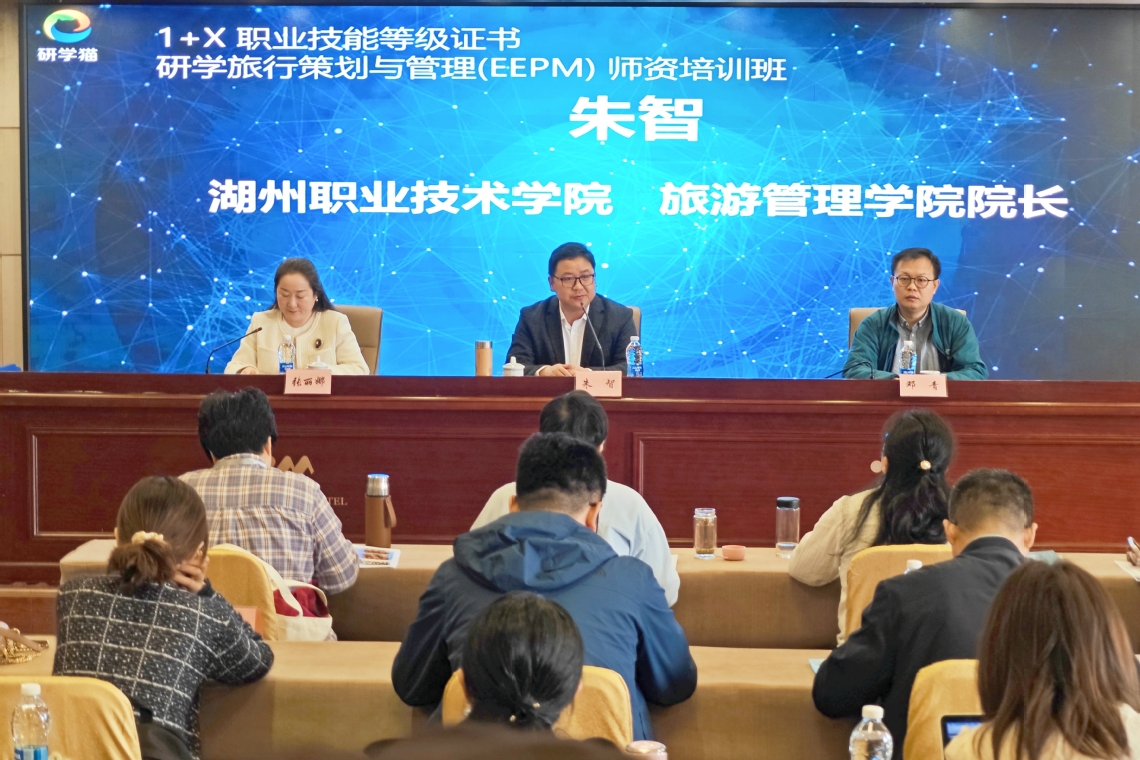 3月24日,由北京新时代教育科技研究院指导,亲子猫(北京)国际教育科技有限公司主办,湖州职业技术学院旅游管理学院承办的研学旅行策划与管理(EEPM)职业技能等级证书师资培训班顺利开班,开班仪式由旅游管理学院副院长主持。本次培训旨在培养专业化的研学旅行指导师队伍,来自全国各地60名行业相关人士参加此次培训。