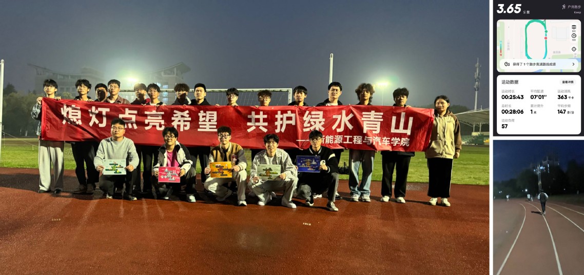 为了增强同学们的绿色环保意识,提高低碳出行行动力,培养绿色积极的心理状态,配合公寓“地球一小时”熄灯倡议,新能源工程与汽车学院于3月23日晚间至3月24日晚间举办了校园夜跑活动。