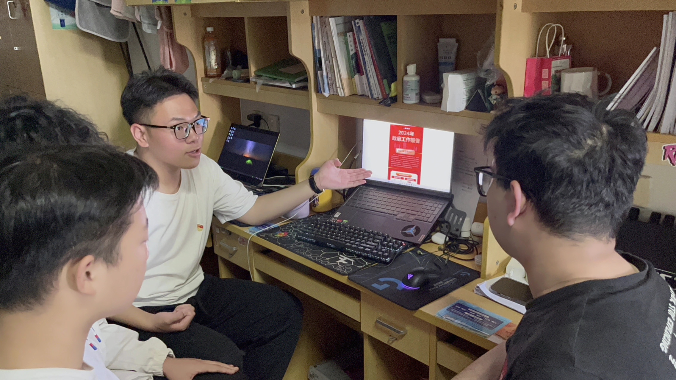 宿舍,这片温馨的小天地,如今摇身一变,成为了同学们学习两会精神的重要课堂。建筑工程学院以10号居正公寓楼作为学习两会精神的核心阵地,以学生党员和入党积极分子为骨干力量,将两会精神的种子播撒到每一个宿舍角落。在这里,同学们一起学习习近平总书记在两会期间的重要讲话精神,围绕两会热点展开热烈讨论,深入探讨两会精神的内涵,紧跟国家大政方针的步伐,感受时代前进的脉搏。