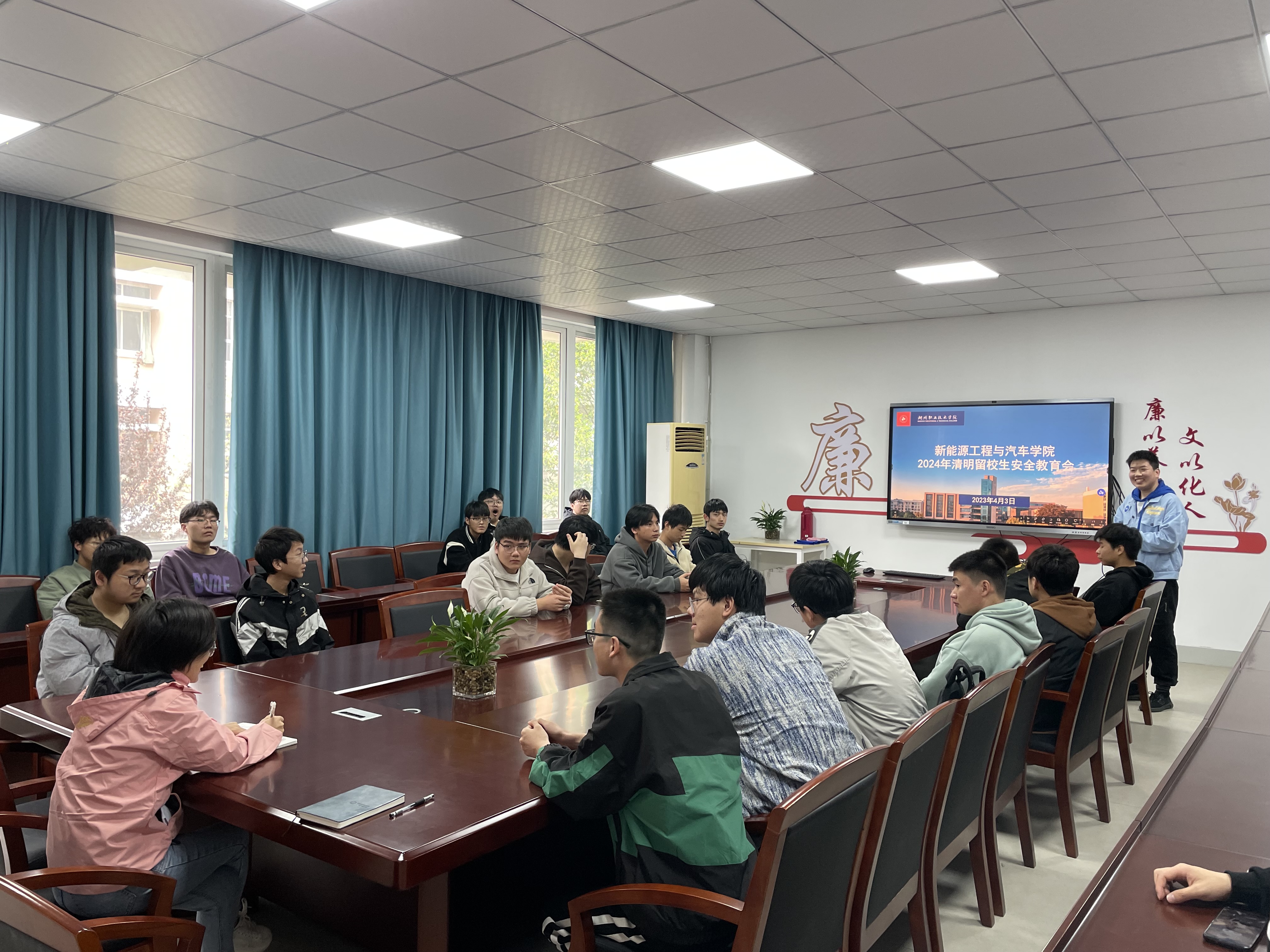 为了进一步加强清明假期留校生的住宿管理,提升同学们的安全意识,营造安全稳定的居住和学习环境,4月3日,新能源工程与汽车学院开展了清明留校生安全教育会,学院学生工作负责人、学工办主任、公寓辅导员及所有单人寝留校生参加了本次会议。