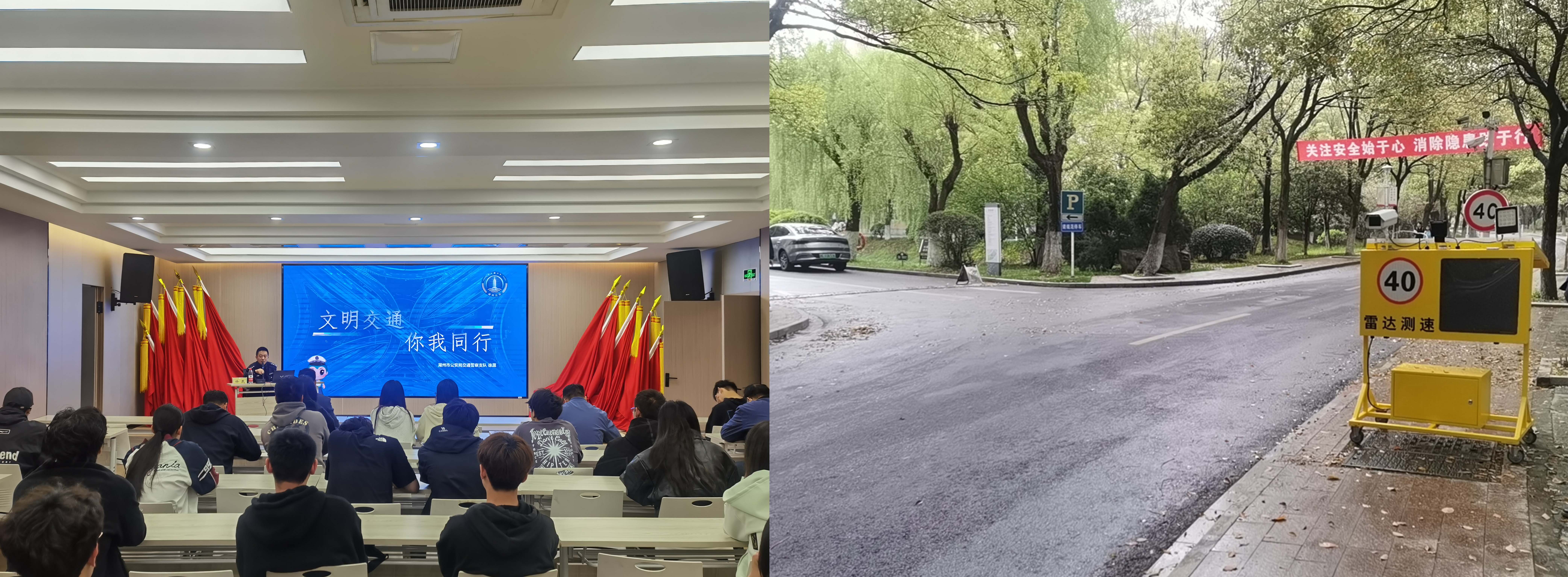 拓展“宣传”点,增强安全教育渗透力。通过悬挂安全横幅、观看专题教育片、开展交通安全主题讲座、校园交通行为督查等形式,深入开展交通安全、出行安全教育,努力将安全根植于心,落实于行。常态化做好校园文明交通引导,有效劝导行人走人行道,增强师生文明出行、共守安全的自觉性与主动性。