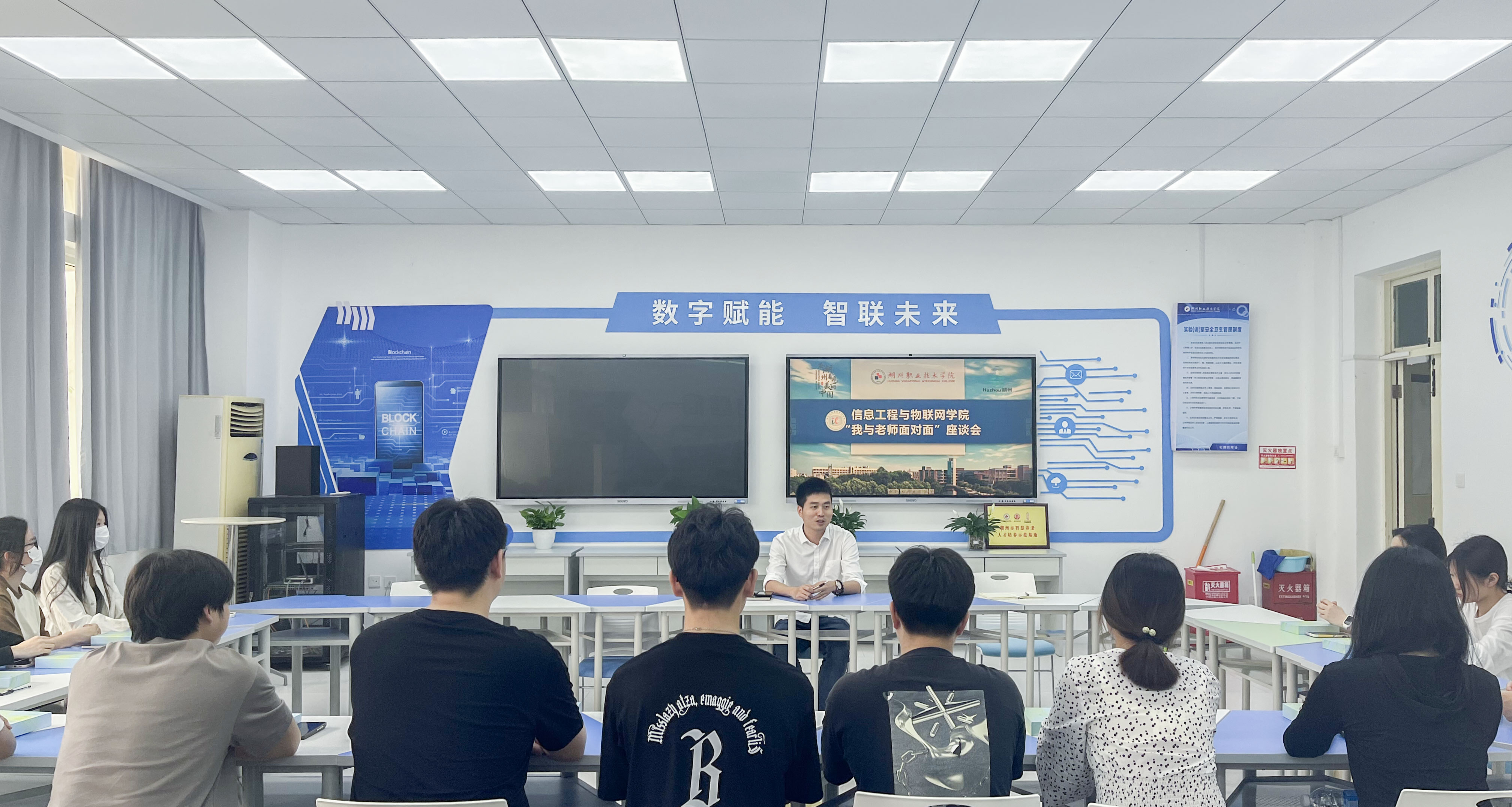 为进一步了解2023级班级管理情况、学生的思想动态及学习生活状况,助推学生更好成长成才,4月16日中午,我校信息工程与物联网学院举办2024年度第二期“我与老师面对面”师生座谈会,学院学生工作负责人、辅导员与2023级助理班主任座谈交流。