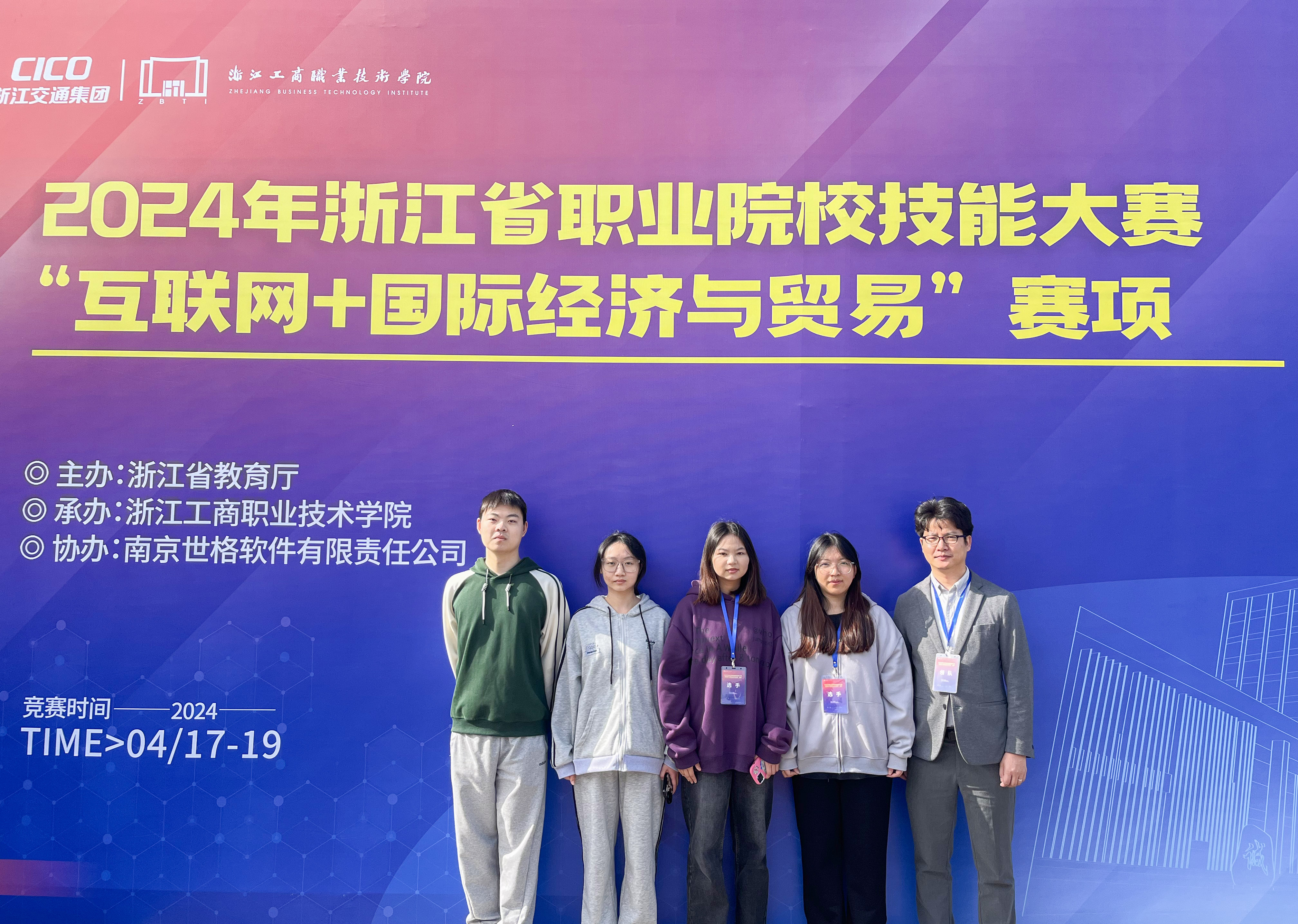 近日,2024年浙江省职业院校技能大赛“互联网+国际贸易综合技能”赛项在宁波举办,来自全省高职院校的35支代表队同台竞技。我校经济管理与电商学院的戴庆玲、张旺军老师指导,赵玲慧、潘柔静、石彦凯和成幸瑶四位同学组成的湖职队荣获二等奖。