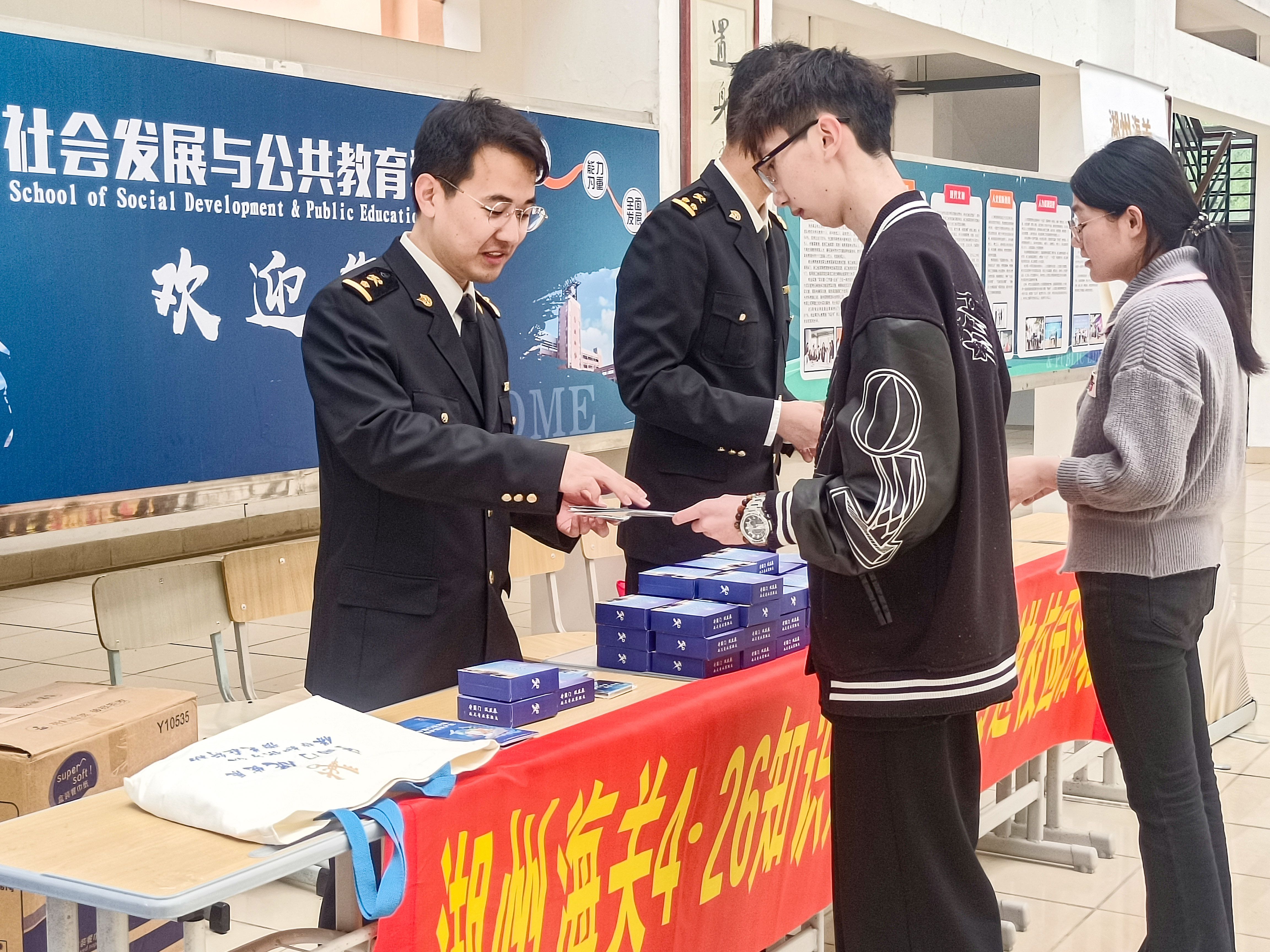 活动中,湖州海关相关工作人员围绕知识产权的定义、类型、特点、法律常识等内容,结合海关在进出口商品检验、进出口侵权行为打击等方面的工作内容进行了宣传与知识普及。活动现场,湖州海关工作人员与来往同学积极互动,讲解当代大学生关心的专利、著作权等内容,普及进出口商品知识,提高大学生鉴别侵权假冒商品能力,筑牢防范电信网络诈骗校园防线。学院学生通过宣传册和现场讲解,意识到知识产权保护对于自身权益保护的重要性,了解到海关在进出口活动中肩负打击假冒侵权伪劣商品的庄严使命。