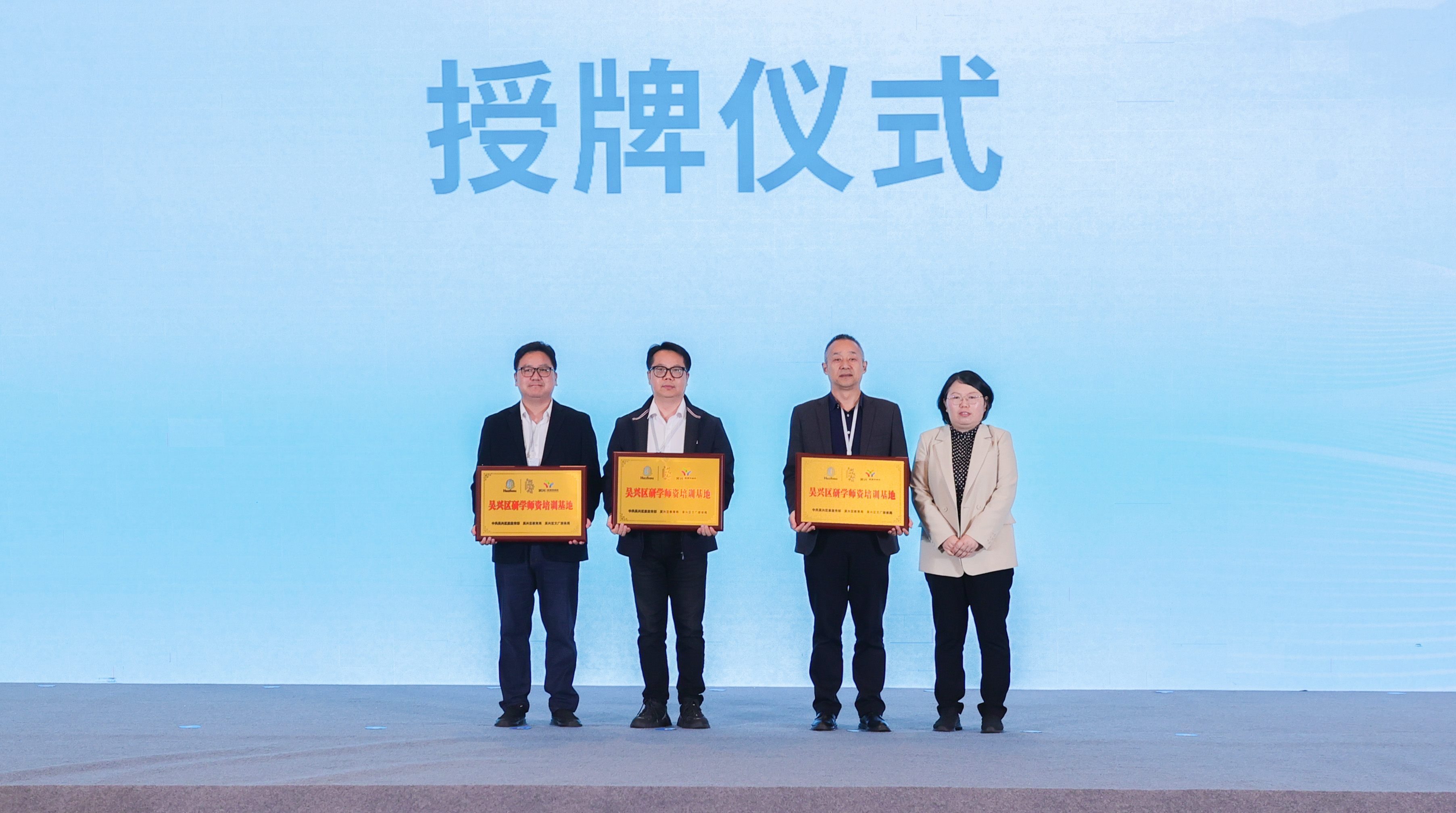 本次活动旨在深化长三角地区研学旅行的交流与合作,挖掘江南文化的深厚底蕴,展现湖州独特的人文魅力,进一步推动文化旅游与教育的融合发展。国家文旅部,省、市、区有关领导以及长三角融媒体研学负责人代表、试点行政村代表、学校代表、研学基地(营地)代表、旅行社代表等齐聚一堂,共同见证这一文化盛事。因在吴兴区人文乡村研学领域做出杰出贡献,湖州职业技术学院被授予“吴兴区研学师资培训基地”,旅游管理学院负责人代表我校上台接牌。