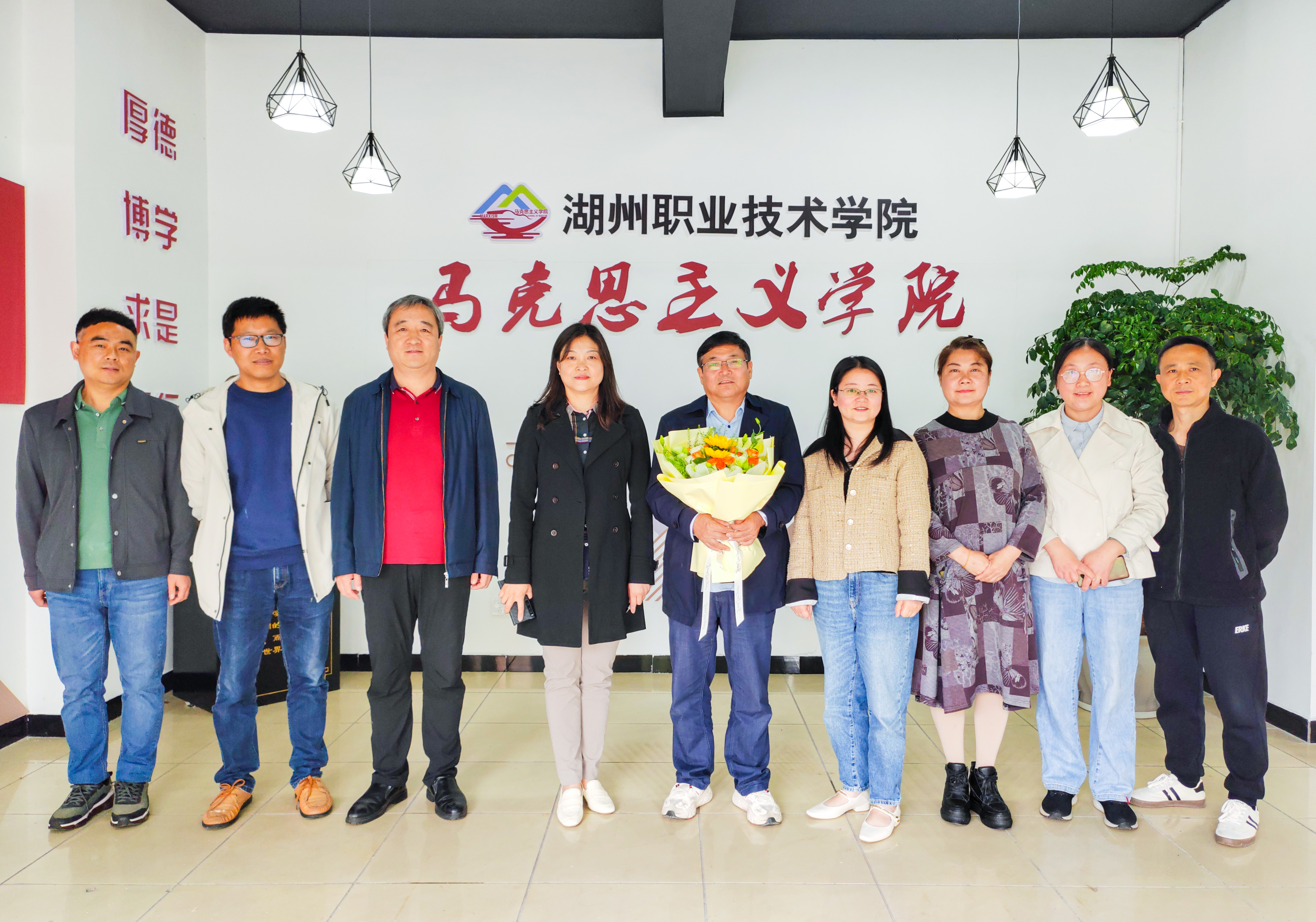 仪式上,教师代表向朱四明老师献上了鲜花和荣休纪念章,朱老师和学院教师合影留念。(文/胡泽勉)