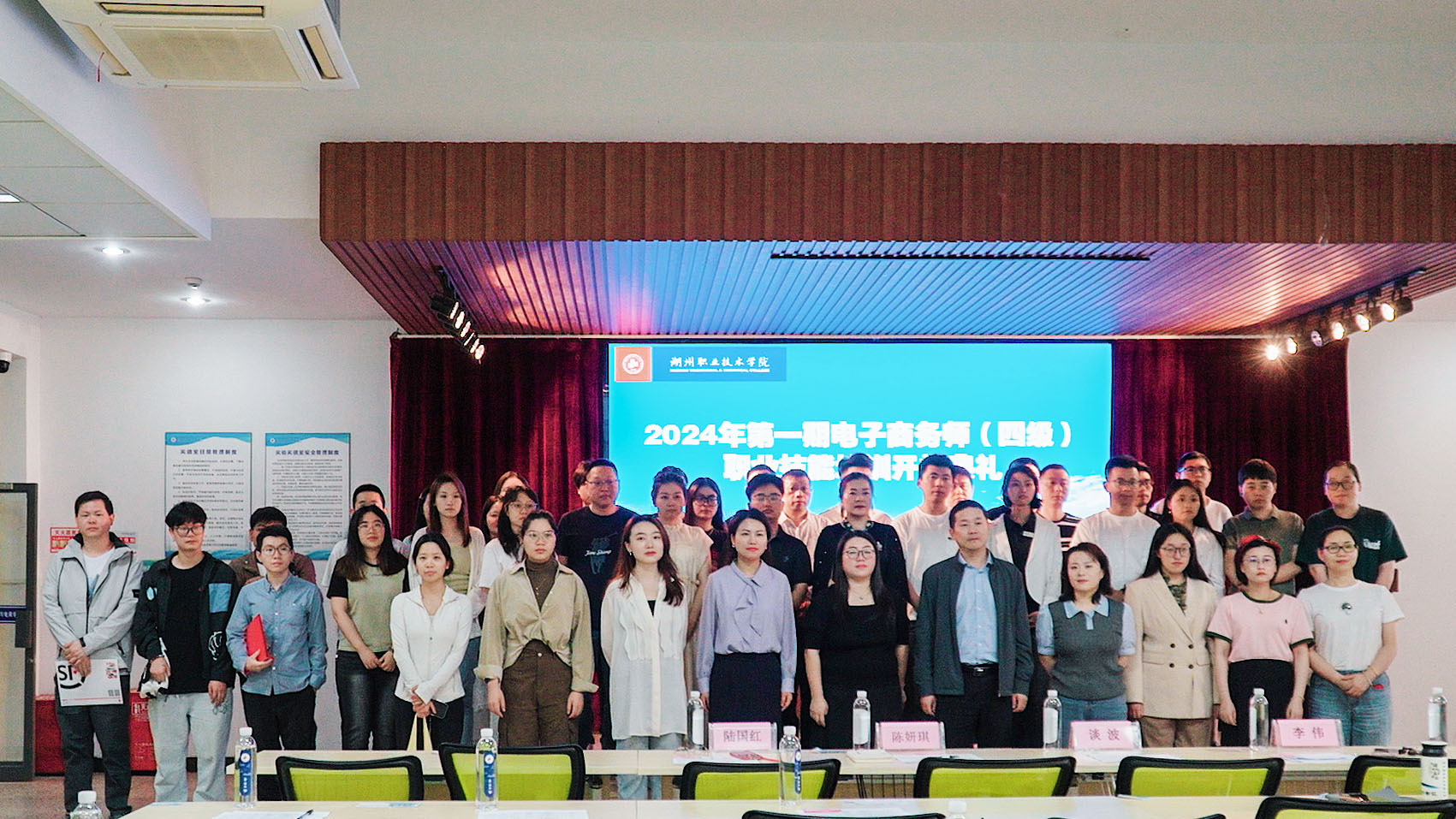 为深入贯彻全国职业教育大会精神,认真落实党中央、国务院关于促进数字经济和电子商务发展的重要部署,培养高质量技能人才,助力群众实现就业增收,6月1日,经济管理与电商学院2024年第一期电子商务师职业技能培训社会班正式开班。湖州市商务局电子商务处、市电子商务促进会相关领导,经济管理与电商学院相关负责人,电子商务教研室教职工及全体培训学员出席此次开学典礼。