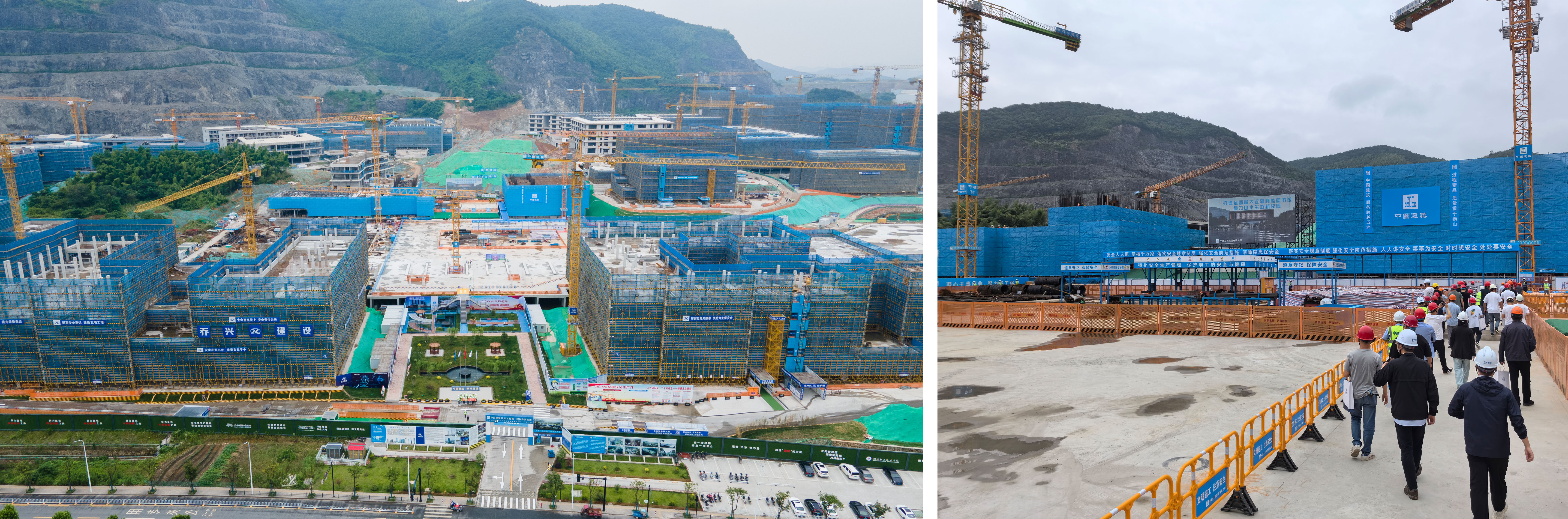 观摩会首先听取项目负责人关于标化工地建设理念、施工质量安全管理措施、技术创新应用及环保施工等方面的详细介绍。随后,参会嘉宾实地参观了图书馆主楼主体结构标化观摩区、开放大学二次结构标化观摩区,绿色标化场地观摩区。本次观摩会从数字智慧应用、质量标准化、安全标准化、机电标准化、智慧工地管理以及现场实体样板等多个方面,向参会嘉宾展示建筑技术和管理上的创新成果,有效推广先进的施工技术和工艺。