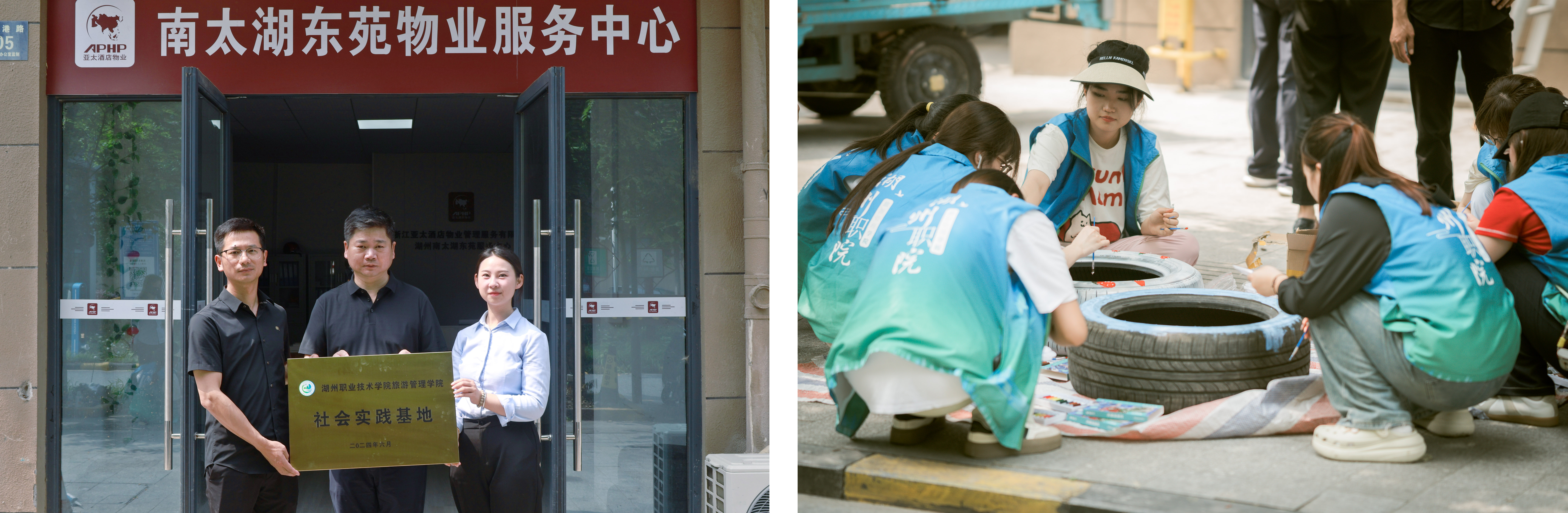 本次活动还举行社会实践基地授牌仪式,旅游管理学院将以共建社会实践基地为契机,充分发挥共青团实践育人作用,持续推动青年成长成才。通过此次青年志愿者活动,我们希望能够为高新区南太湖东苑社区带来一份美丽的艺术气息,同时增强居民们的环保意识和社区凝聚力,让社区成为一个更加和谐、宜居的地方。(文/曹苏杭)
