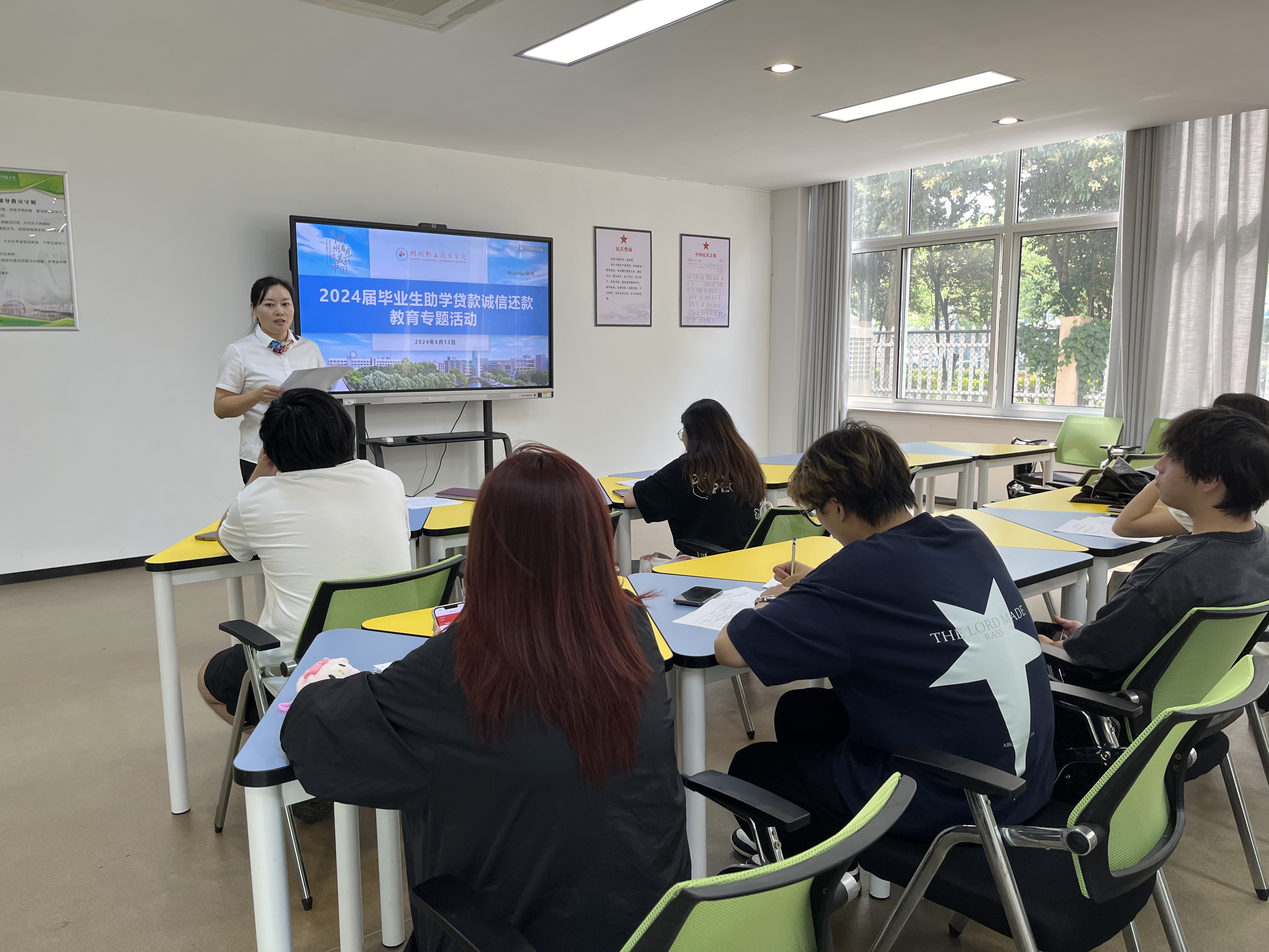 为深入贯彻党的二十大精神,全面加强资助育人工作,促进助学贷款工作的健康发展。6月13日下午,学校组织开展2024届助学贷款毕业生诚信还款教育专题活动,学生处资助管理负责人、银行工作人员及相关助学贷款毕业生参加了活动。