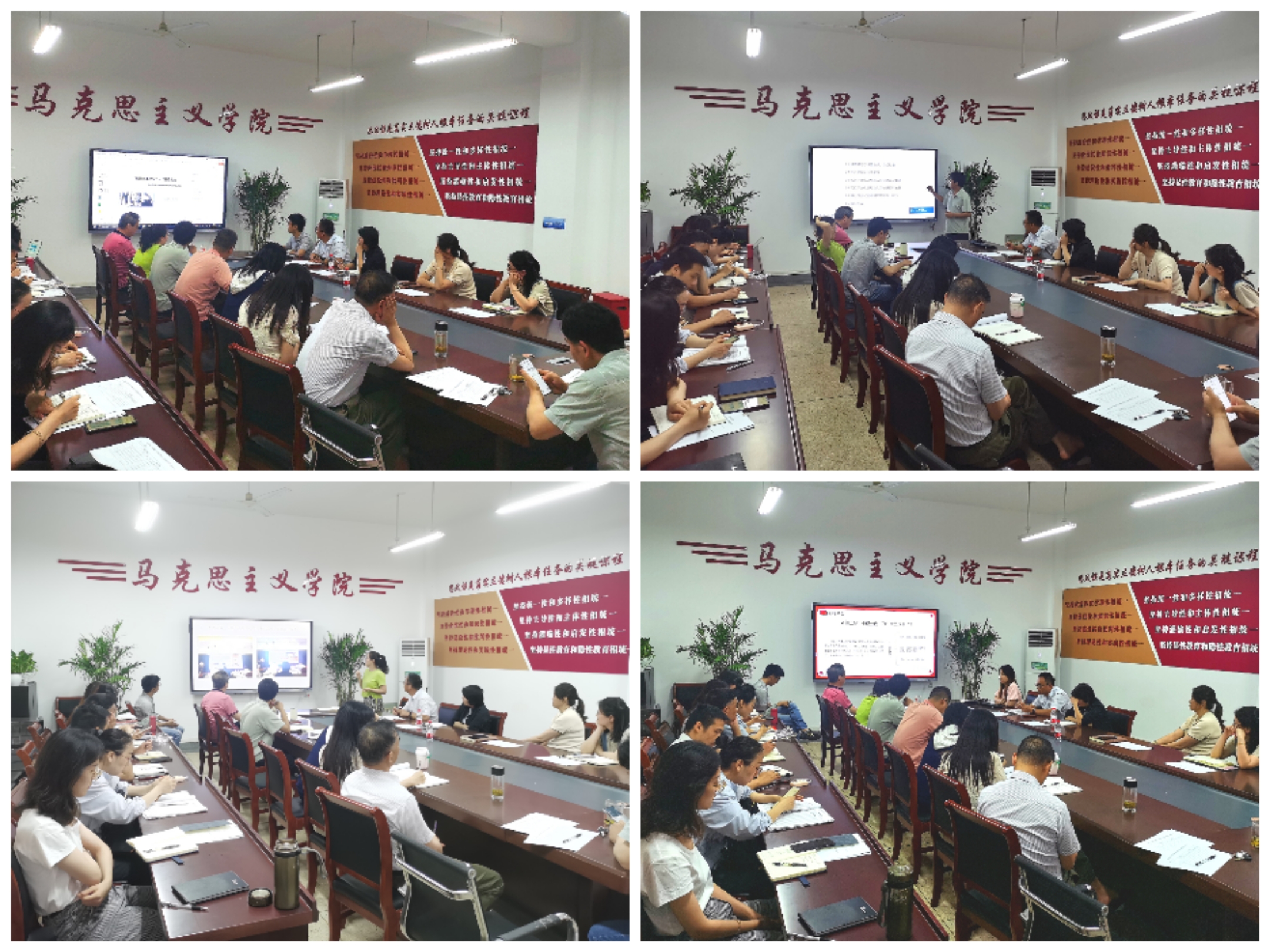 为深入学习习近平总书记对学校思政课建设重要指示精神,不断提高我校思想政治理论课建设水平,锻造高素质思政教师队伍,6月14日下午,马克思主义学院召开教师外出培训和学术交流成果分享会,全体教师参加会议。