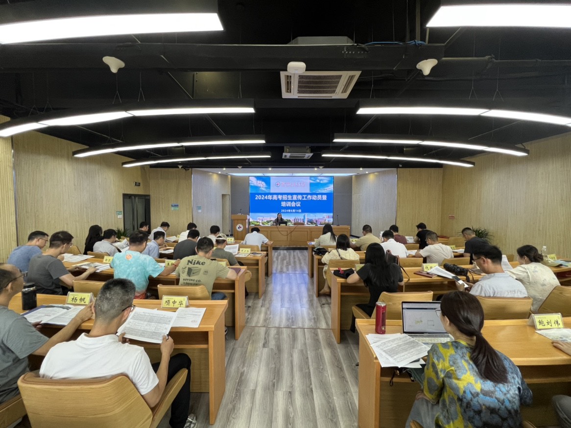 为全力做好2024年高考招生宣传工作,不断提升学校生源质量,6月14日下午,学校召开2024年高考招生宣传工作动员暨培训会议。招生就业处负责人主持会议,各学院招生工作负责人及招生宣传骨干教师30余人参加。