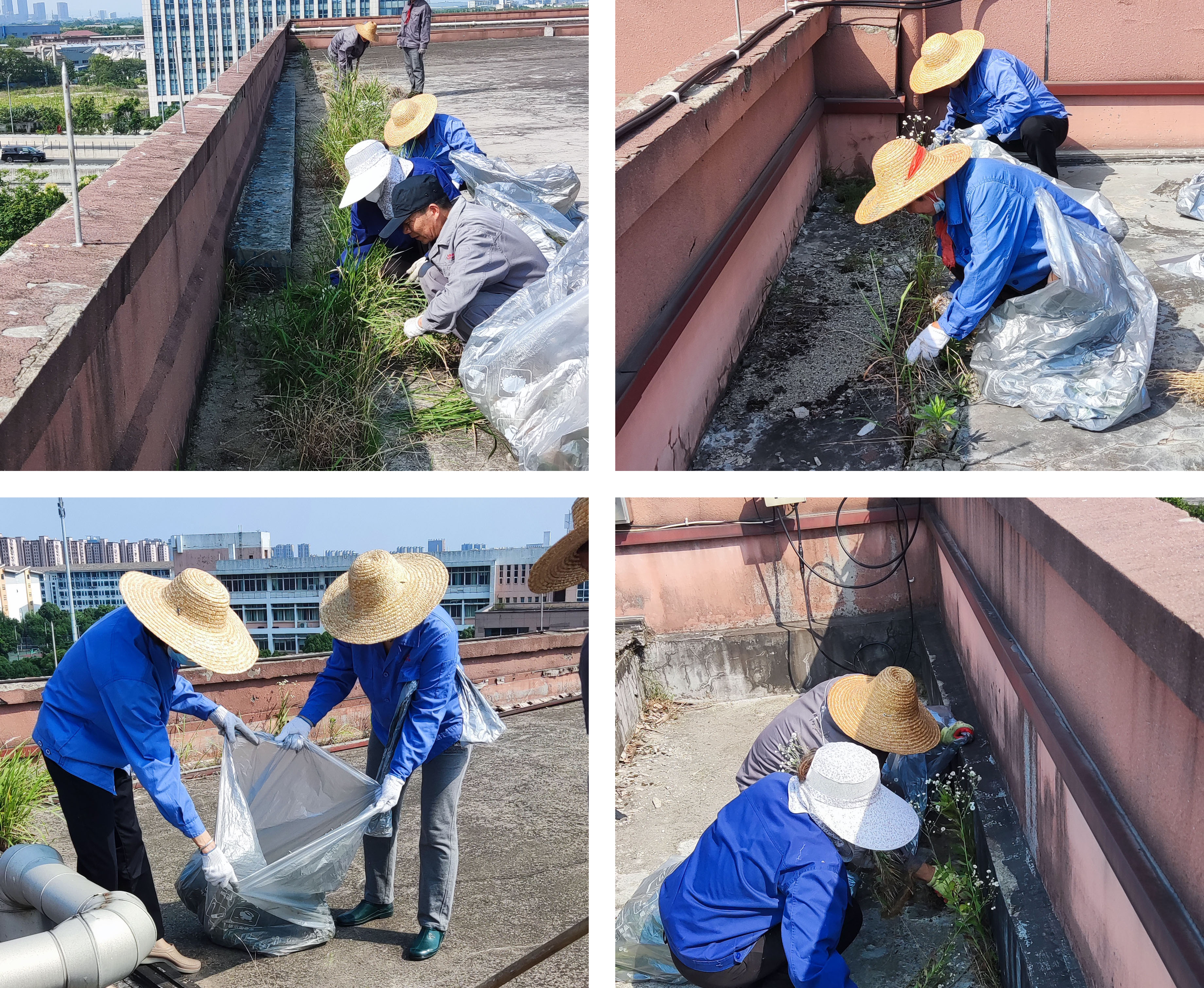 汛期将至,资产经营公司未雨绸缪早行动,于6月18日开展楼顶集中清理活动,增强汛期排涝能力,全面排查楼宇屋面安全风险隐患,确保隐患得到及时消除,保障汛期全校师生生命与财产安全。