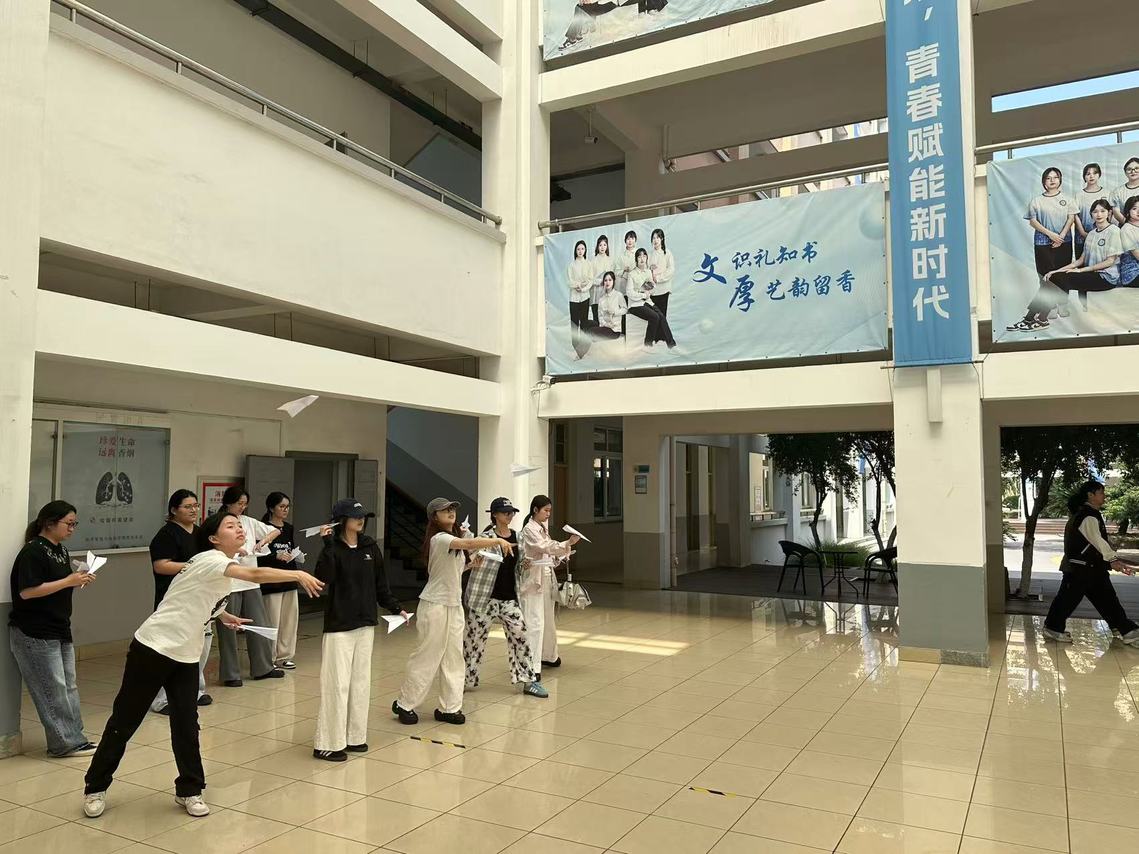 活动分为“放飞儿时梦——纸飞机比赛”和“记忆胶卷放映厅——动画知识问答”两个环节。在纸飞机比赛中,学生们首先需要用彩笔在A4纸上写下自己的青春絮语,可以是人生愿景、成长期许,也可以是生活烦恼、青涩心事,这些或庄重或俏皮的文字,让每一架纸飞机都变得独一无二。紧接着,大家纷纷使出浑身解数进行纸飞机折叠,有的注重飞机造型,有的研究飞行技巧,最终来自国贸2402的彭章珣同学凭借出色的投掷技巧和飞机设计,以12.8米的飞行距离夺得冠军。与此同时,线上进行的动画知识问答也如火如荼地展开,题目涵盖《葫芦娃》《黑猫警长》《舒克和贝塔》《小鲤鱼历险记》《大耳朵图图》《神奇宝贝》《灌篮高手》等经典动画,这些共同的童年记忆就像一条无形的纽带,将散布在校园各处的学生们紧密联结。虽隔着屏幕,但因经典动画而产生的共鸣与感动,依然让每个人的心紧紧相依,在追忆中重获最纯粹的快乐。