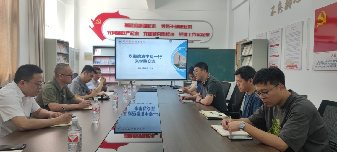 6月16日下午,德清县职业中等专业学校副校长率队莅临我校智能制造与电梯学院,围绕中高职一体化工业机器人技术专业的建设与发展,开展深入交流。我院行政工作负责人及相关教师参加座谈。