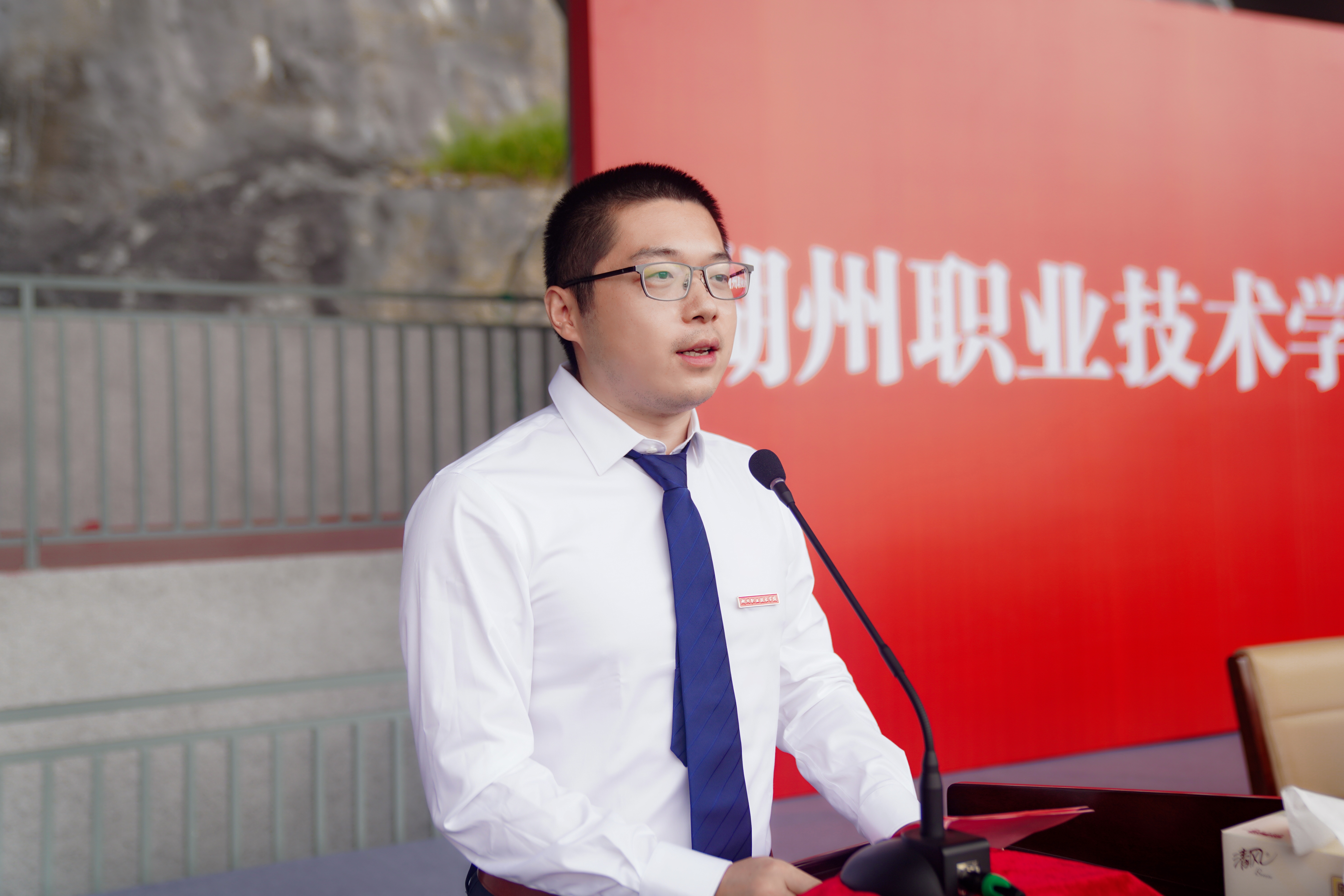 出席典礼的主席台领导为新生代表佩戴“湖州职业技术学院”校徽,这一刻他们正式成为湖职人,秉承“崇德尚能”校训,找准人生前行的航道与坐标,书写属于自己的辉煌篇章。