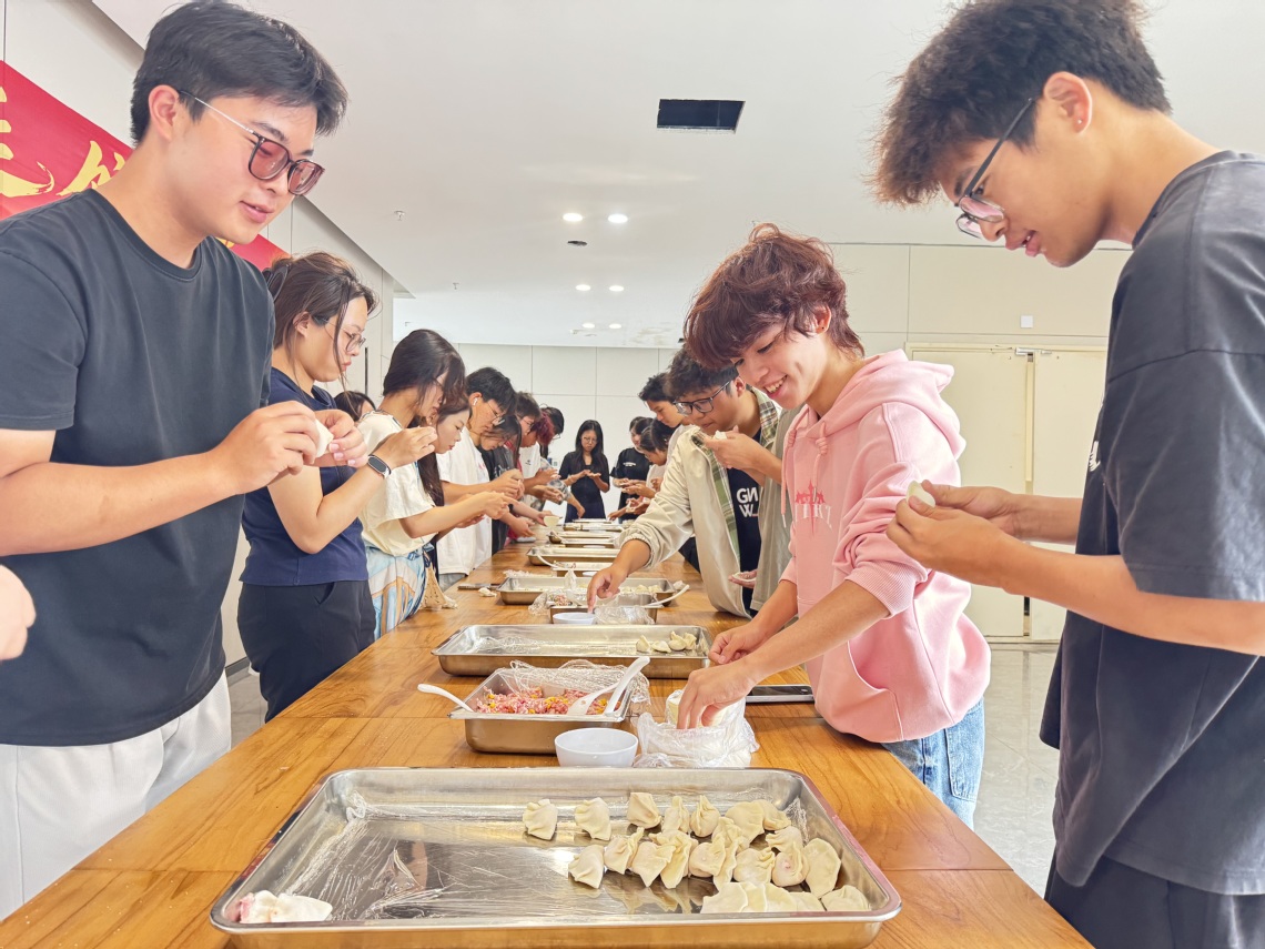 活动现场洋溢着欢声笑语,充满了节日的温暖。同学们围坐在一起,动手制作象征团圆与美满的饺子。大家相互交流包饺子的技巧,分享着家乡的趣事和校园生活的点滴,在协作与谈笑中,不仅让一盘盘形态各异、饱含心意的饺子顺利“完工”,更深化了彼此间的友谊。饺子的香气与浓浓的温情交织,让远离家乡的学子们深切感受到了“此心安处是吾乡”的温暖与关怀。这既是一次趣味盎然的美食体验,更是一堂生动的爱国主义教育课,在协作谈笑中凝聚了人心,培育了深沉的家国情怀。