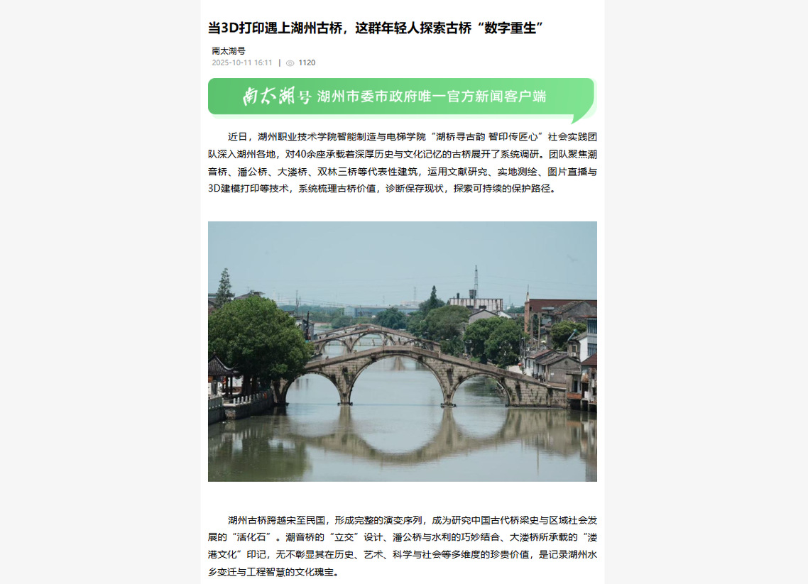 》报道了我校智能制造与电梯学院社会实践团队对古桥展开系统调研的相关新闻。