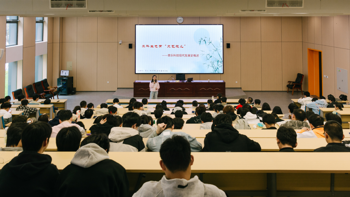 随着人工智能技术的迅猛发展,音乐与科技的融合已成为不可逆转的趋势。为积极响应以数字化、智能化为支撑的教育新基建,促进数智化优质资源的共享共融,10月22日下午,我校智能制造与电梯学院在17-G03报告厅成功举办“工科生也有‘文艺范儿’——音乐科技现代发展史概述”主题讲座。活动特邀湖州师范学院音乐学院鲁立副教授担任主讲,学院200余名师生共同参与。