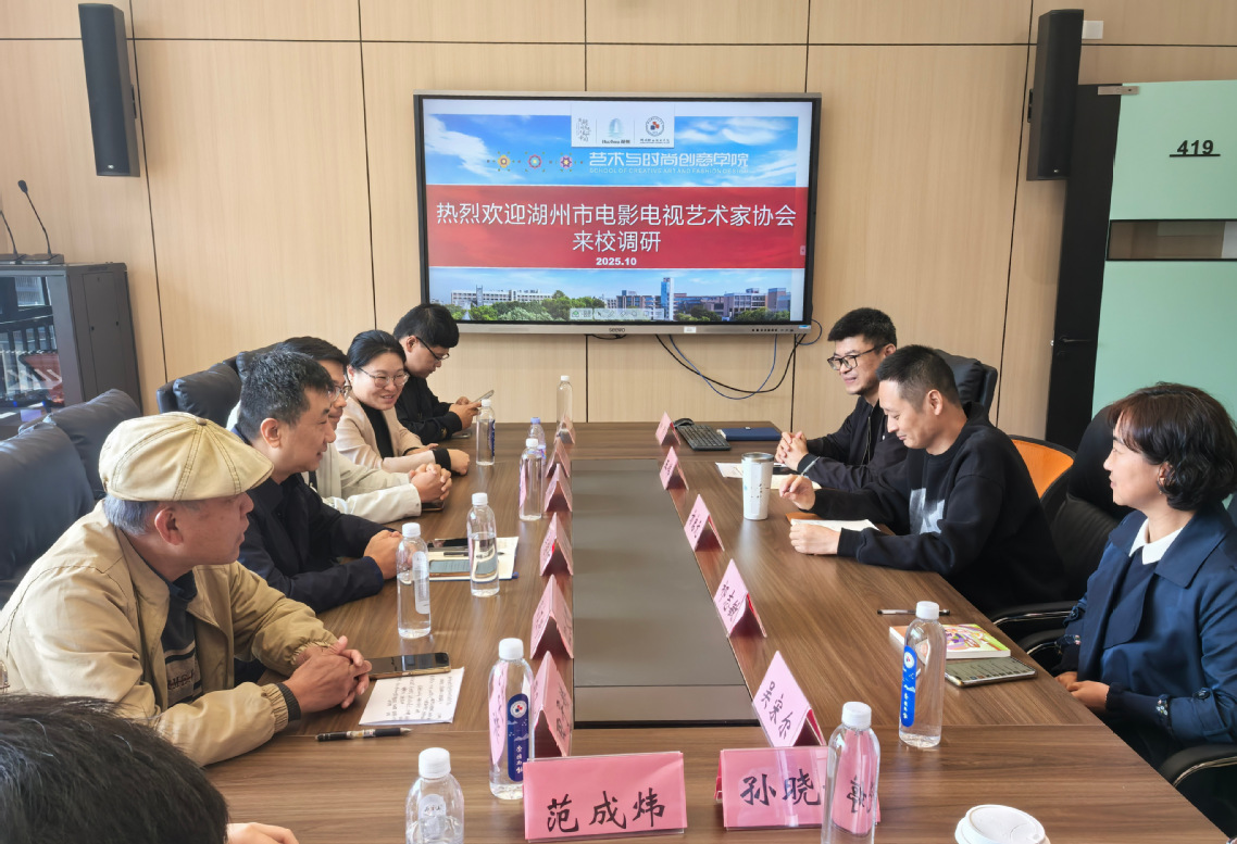 10月23日下午,湖州市电影电视艺术家协会主席吴继任率调研组一行来校调研,就影视产业发展与人才培养开展座谈。艺术与时尚创意学院相关负责人及专业教师参会。
