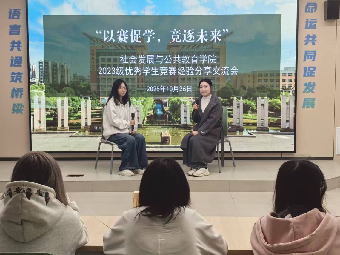 为充分发挥优秀学子的榜样示范作用,引导广大学生科学规划学业与职业生涯,10月26日晚,社会发展与公共教育学院在青春夜校举办以“以赛促学、逐梦未来”为主题的朋辈引领访谈活动。本次活动特邀在学术竞赛与创新创业领域表现突出的人力2302班郭梦雅同学进行经验分享,为在场同学带来了一场关于成长、挑战与选择的深度交流。