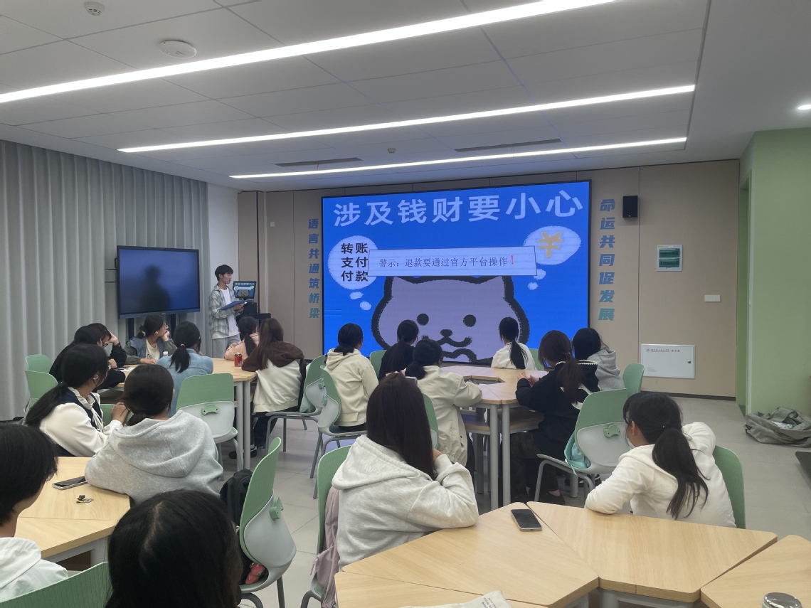 为了进一步增强学院新生的电信网络诈骗防范意识和自我保护能力,筑牢校园反诈安全防线,切实守护学生财产安全与身心健康,社会发展与公共教育学院10月27日在16-208教室开展“反诈护航,健康人生”主题教育活动,通过“知识讲解+案例警示+互动实践”的形式,为学生送上一堂生动的反诈安全教育课。